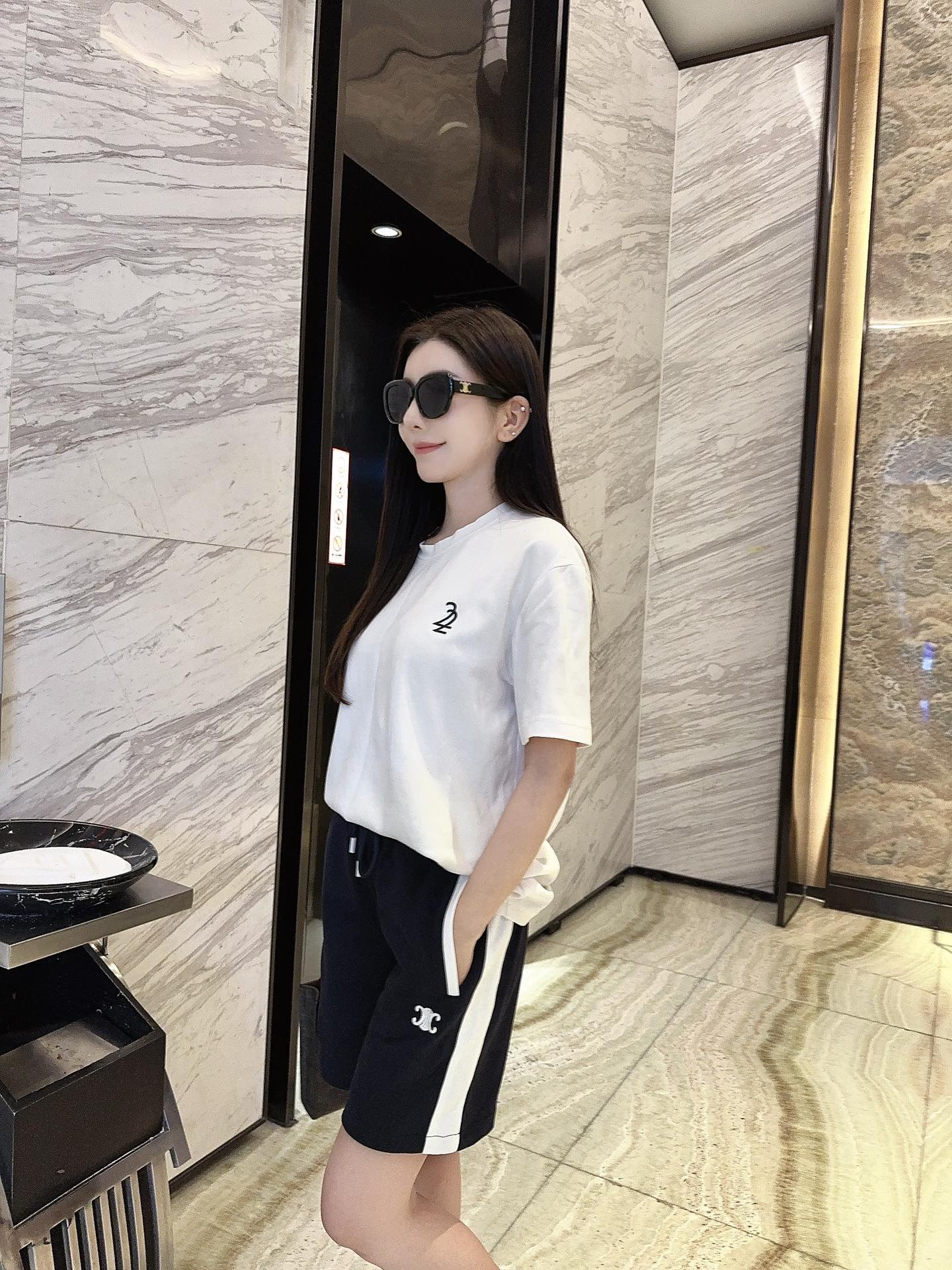 CELINE/赛琳 凯旋门字母刺绣短裤 上身效果#