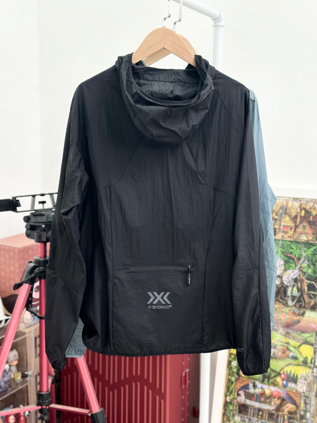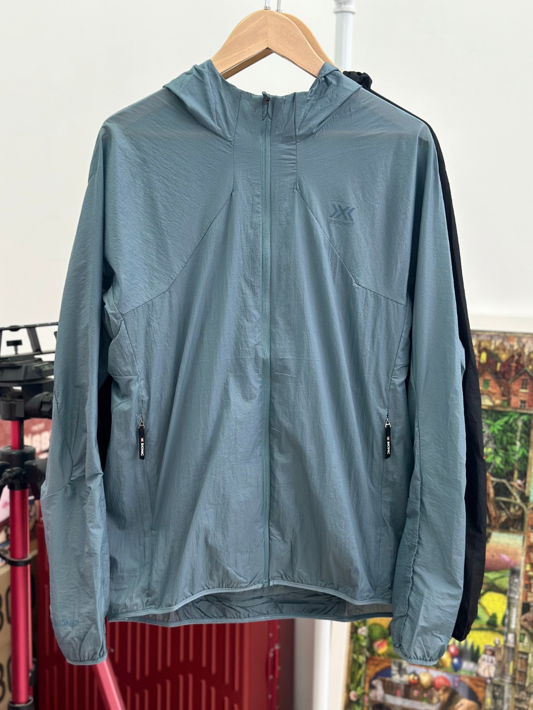 💰160 超薄!独家!X-BIONIC飞逸轻量超薄防风防晒外套皮肤衣 压缩防晒衣 弹力针织布、立体裁剪、弹力包边风帽、前胸、袖口和下摆反光LOGO两侧和后摆隐形拉链 袋、满足多种需求、防泼水、防紫外线、透气、穿着舒服、活动自如; 可压缩收纳! 颜色 黑色 雾霾蓝 尺码m-xxl m连肩袖长76胸围106衣长65适合130斤以下 l连肩袖长79胸围110衣长67适合130-150斤左右 xl连肩袖长82胸围114衣长69适合150-170斤左右 xxl连肩袖长85胸围118衣长71适合170-190斤左右