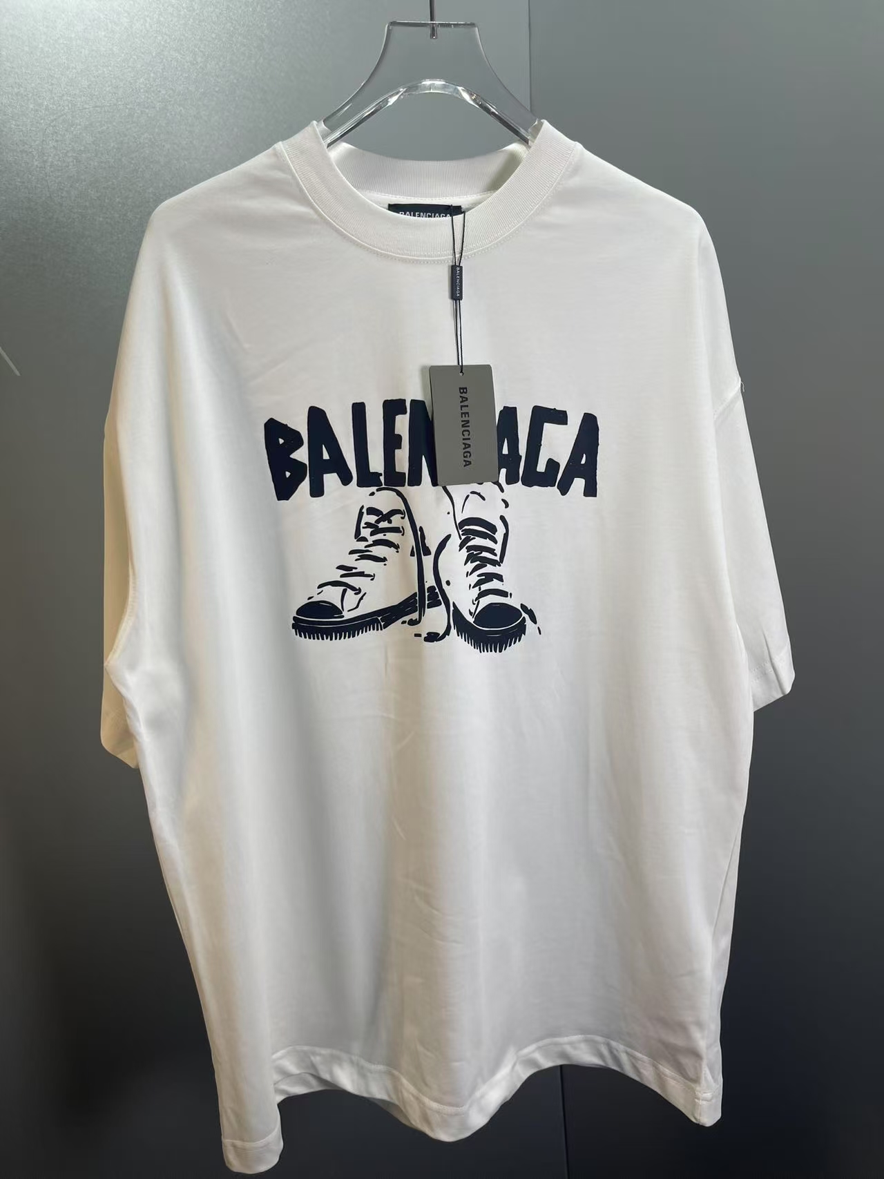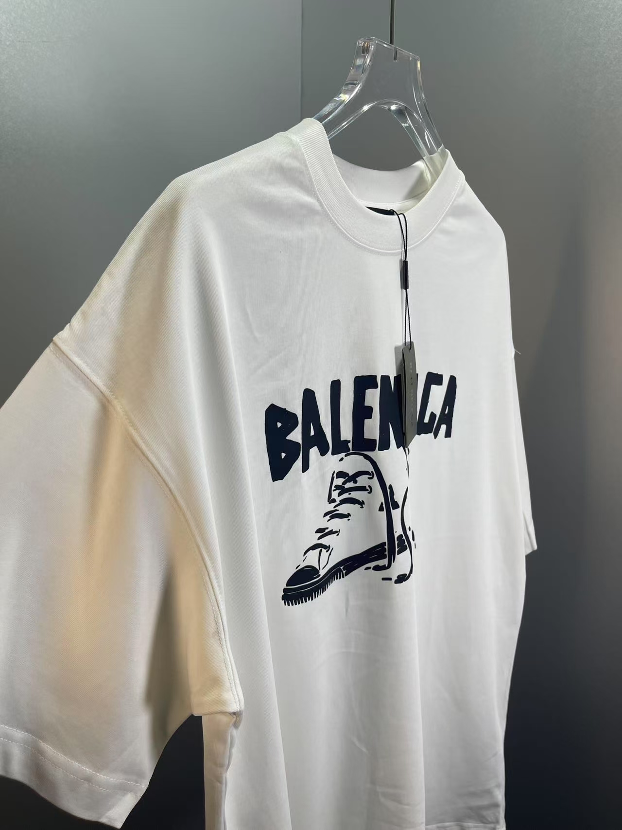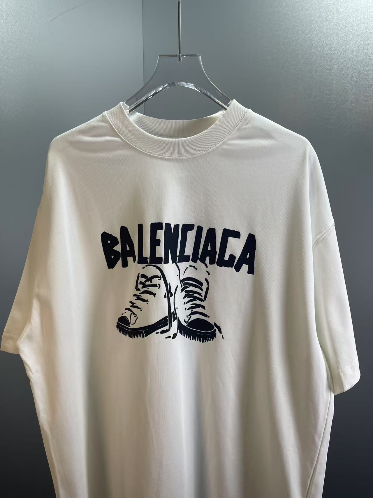 P75巴黎世家 Balenciaga 新款布鞋印花短袖 椭圆机直裂浆印花细腻 工艺字体结合 领口肩部高密度缝线 采用双针锁连包骨位 走线平直细腻 面料采用300g双纱精梳棉 大货三标齐+码数贴+带Logo防尘纸 颜色:黑色 白色 尺码:Xs-L 👉 👉 👉