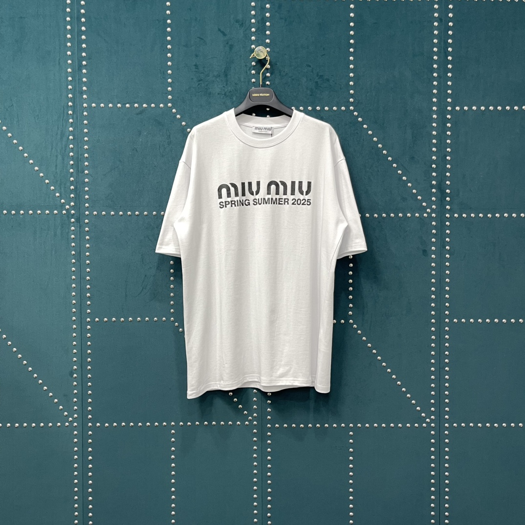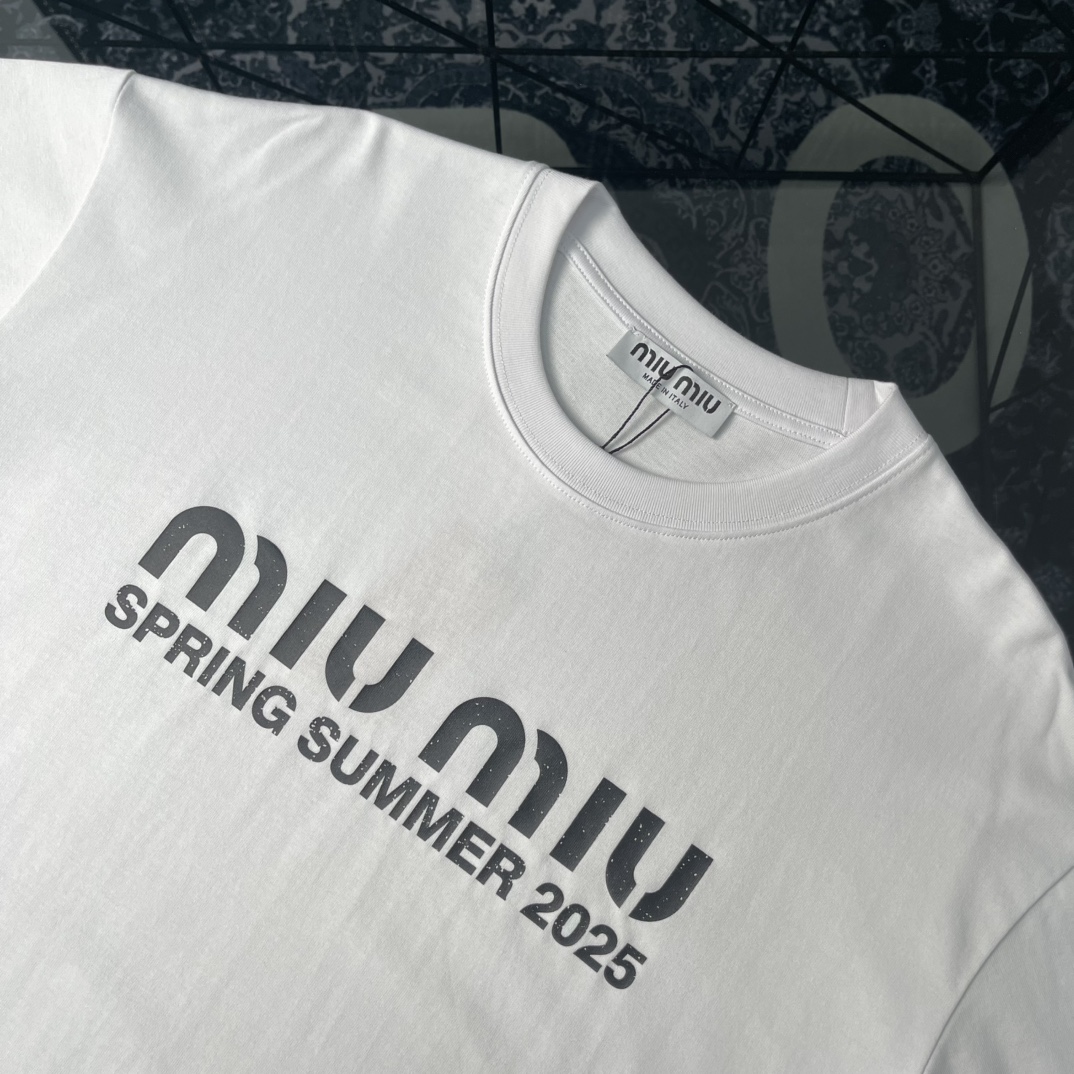 💰85 缪缪 𝙈𝙞𝙪𝙈𝙞𝙪 MiuMiu 25SS 大logo字母做旧印花短袖T恤 MIU040 轻奢主义 男女日常通勤穿搭必备单品 正确版本 随意对比 详细特征 · 260克100% 纯棉双纱汗布面料 · 面部无尘烧毛工艺 底部吸毛 环保活性染 · 同缸定染特种加粗32支双股1×1罗纹 · 进口环保胶浆丝网印花工艺 · 双针车线跨缝工艺 · 原版主唛水洗吊牌包装 颜色:黑色/白色 尺码:XS/S/M/L
