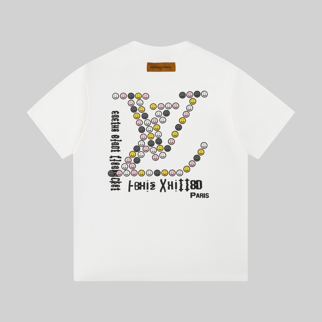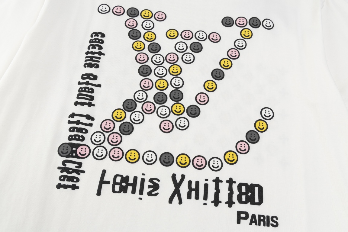 P105礼盒🎁高版本 1V新款联名笑脸印花短袖T恤 采用定制丝光弹力棉质面料,面料柔软透气,Pharrell wiliams菲董携手 NIGO 为V巴黎时装周 Cactus Plant Flea Market与 V合作的短T,设计背面有一个巨大的logo 标志,仔细看是由许多彩色小笑脸组成,每个笑脸都带有Cactus Plant Flea Market标志性的双眼图案,每个笑脸都有厚厚的印花厚涂,质感满满,胸前钢印浮雕徽标图案点缀,可与同季下装搭配营造时尚造型,定制辅料,三标齐全,男女同款! 码数XS-L