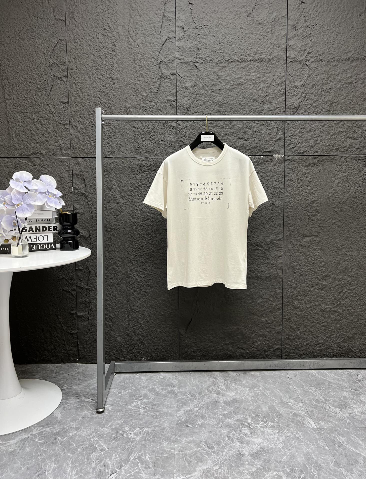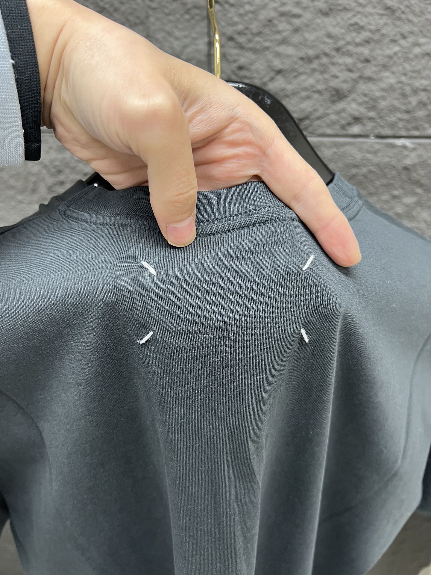 P120 MaisonMargiela马吉拉数字Logo短袖T恤 水洗白 水洗黑色 XS到L~ 代购订单 原版购入开发 货号与YB一致~ 面料是26支纱170克100%全棉平纹面料 两色全部经过水洗磨毛处理 确保面料的柔软性 松垮感让整件衣服上身倍有范 天天洗 面料都不会缩水掉色! 25年马吉拉系列T恤都使用了比较轻薄的面料,整体布料颜色和印花效果风格都是复古的,整个印花效果能很清楚看到英文字母上的小盲点,这些小盲点都是在做菲林网版的时候人工一点一点抠掉的,相比整个完整的英文字母更耗费时间,搭上活性的水性印花浆料使整件衣服看上去复古风更强更自然! 马吉拉数字款T恤,最大特点是领标数字标 全部按照原版百分百还原 纯手工一针一针的缝制上去,在保证主标稳固的同时外观装饰线四个角大小统一且自然,是机器无法替代! 尺码试穿 身高165,体重100,穿XS 身高173,体重138,穿S 身高180,体重165,穿M 身高185,体重185,穿L