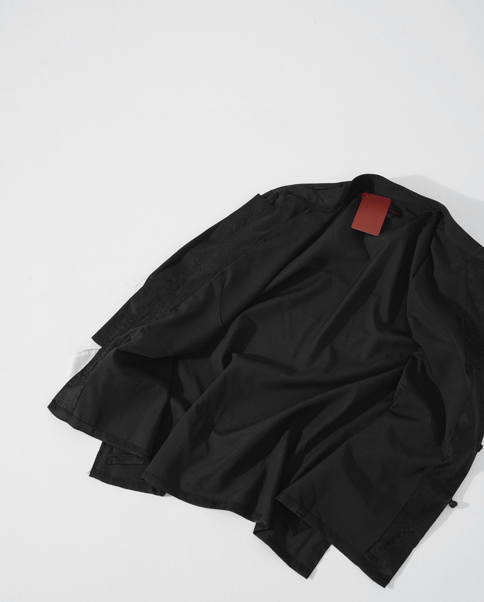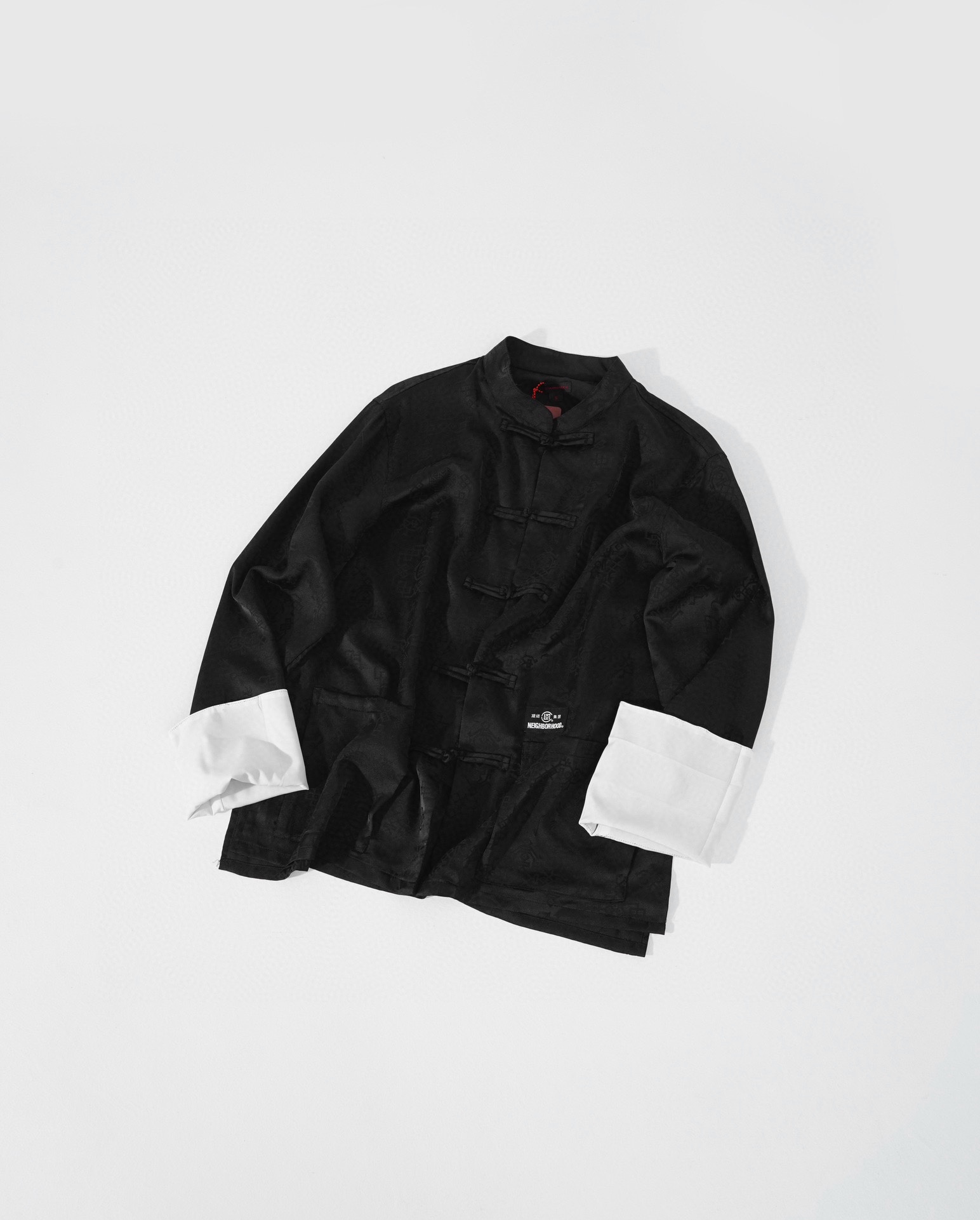 💰140 CLOT×NBHD联名丝绸新中式唐装 定织提花绸缎面料 中等偏薄 夏季也非常合适 袖子白色内衬 手工盘扣 全套辅料细节原版一致 上身老钱风十足 黑色单色入 S-L S胸围108 衣长68 M胸围112 衣长70 L胸围116 衣长72
