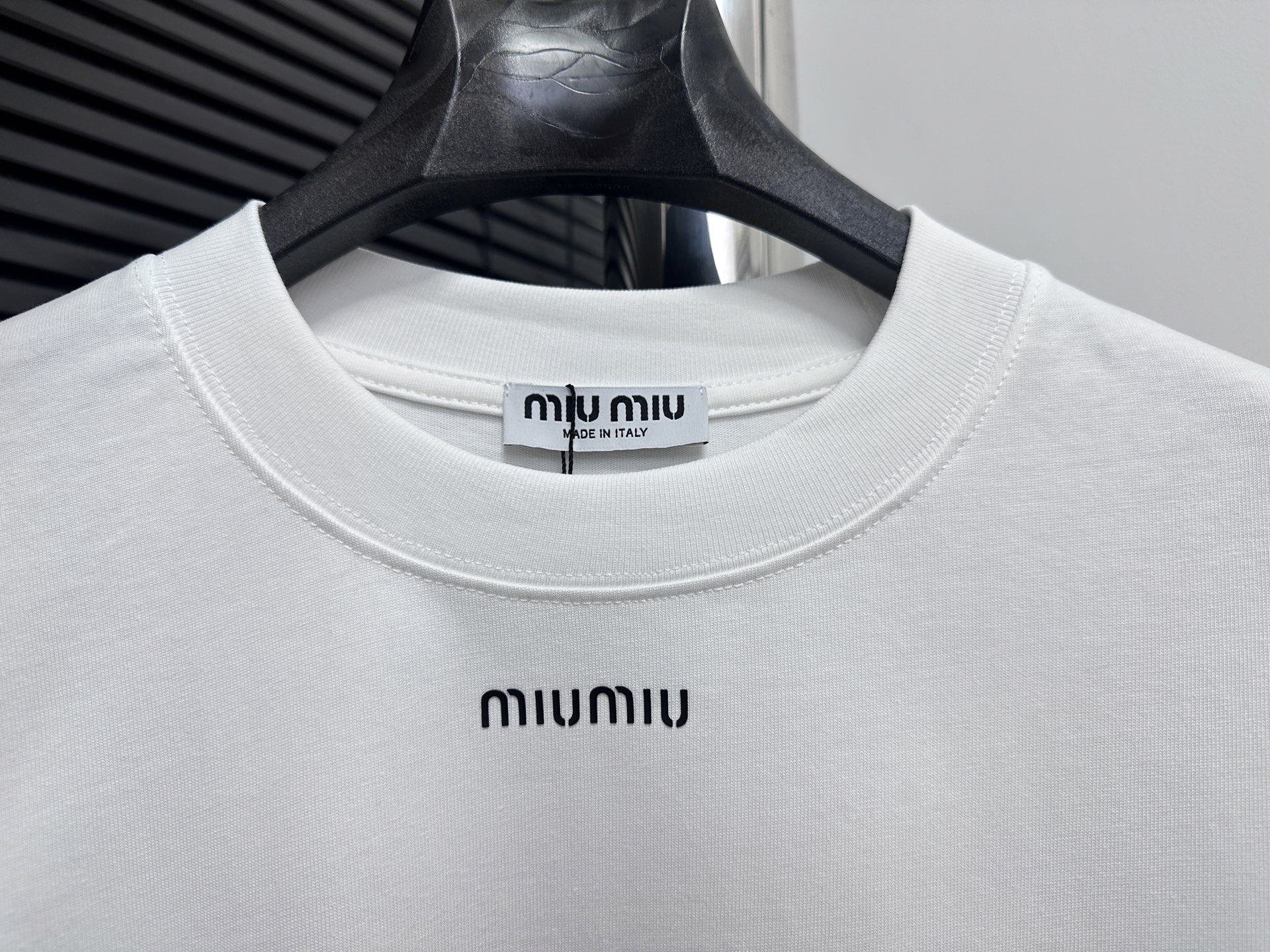 P80 【Miu Miu】谬谬25ss新款字母T恤 采用260g双沙棉 简洁线条上脱颖而出,这要归功于其标志性。凭借其精致、简约的风格,不分性别衣柜中的必备单品。 尺码:XS-L