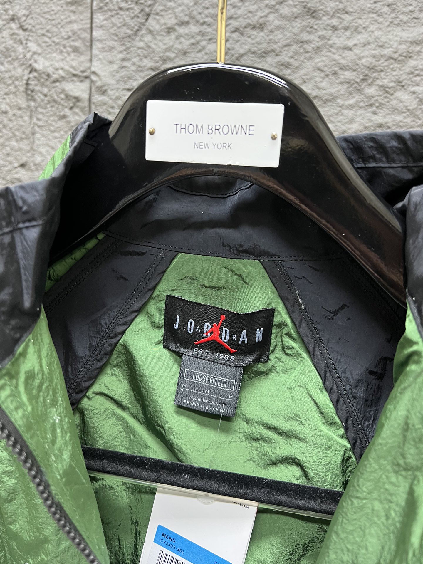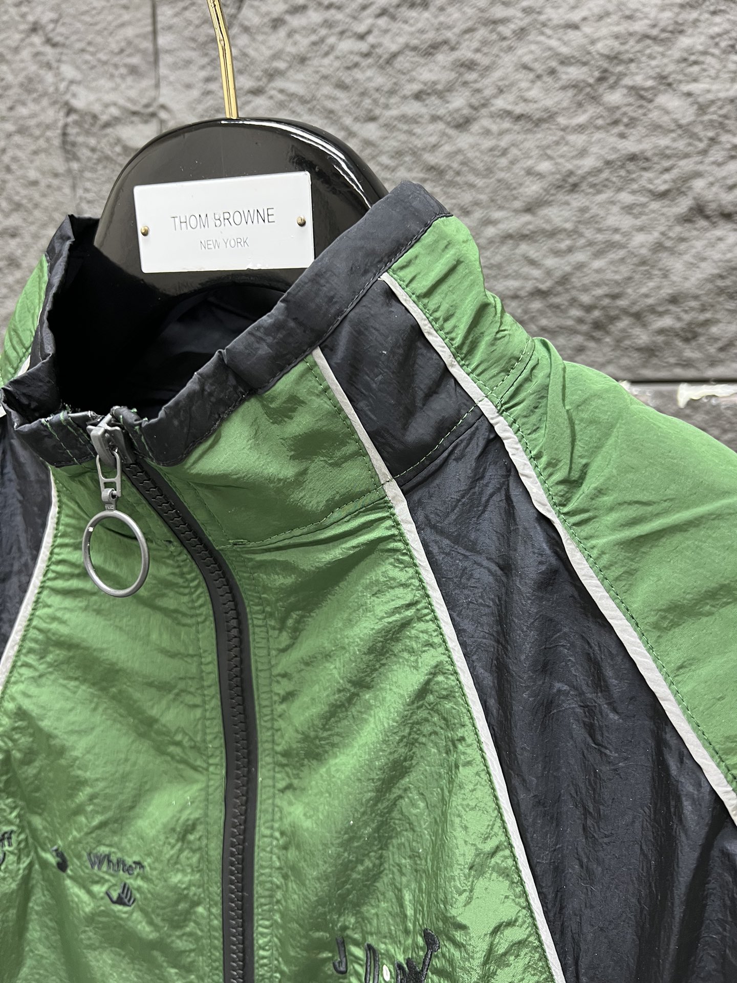💰245 新款AIR JORDAN x OFF WHITE OW联名限量黑绿休闲夹克CV3503-361 -关于尺码- M适合100-120斤 L码适合120-140斤 XL适合140-160斤 2XL适合160-180斤 -关于成衣- 1、订织40D黑丝尼龙布,按照原样定染后做防水处理 看我对比图 细节 面料纹路都一样 市面现成面料做的货 先不说成分对不对 颜色都是完全错的 穿出去就是个笑话 2、对比图中因原样放工厂大半个月脏了+400w闪光灯下 还是有些许色差 但日常肉眼无法分辨 且此缸差原版不在一个厂也无法避免 可忽略不计 3、 刺绣为日本田岛绣花机出品,绣花线原装樱花牌,针数高绣花饱满立体,边缘光滑整洁 4、拉链YKK 下摆尼龙扣都是环保材料的 起眼定染 三标全部订做