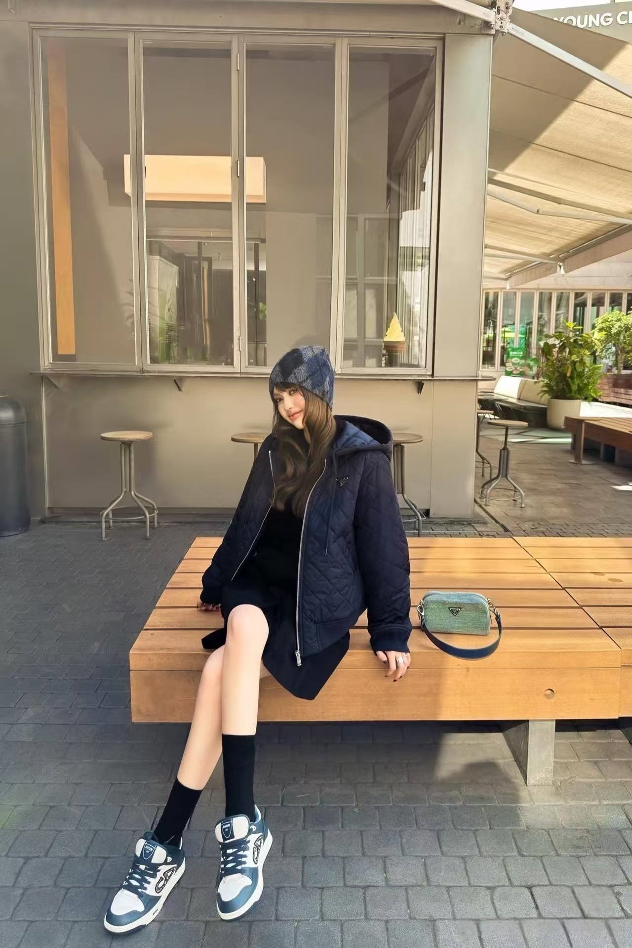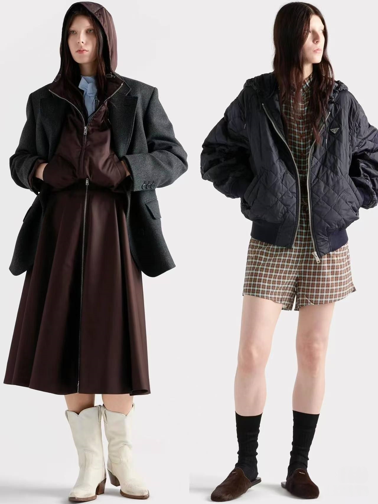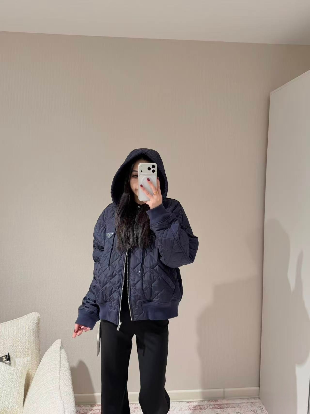 PRADA普拉达PRD 菱格轻薄连帽棉服 上身效果#