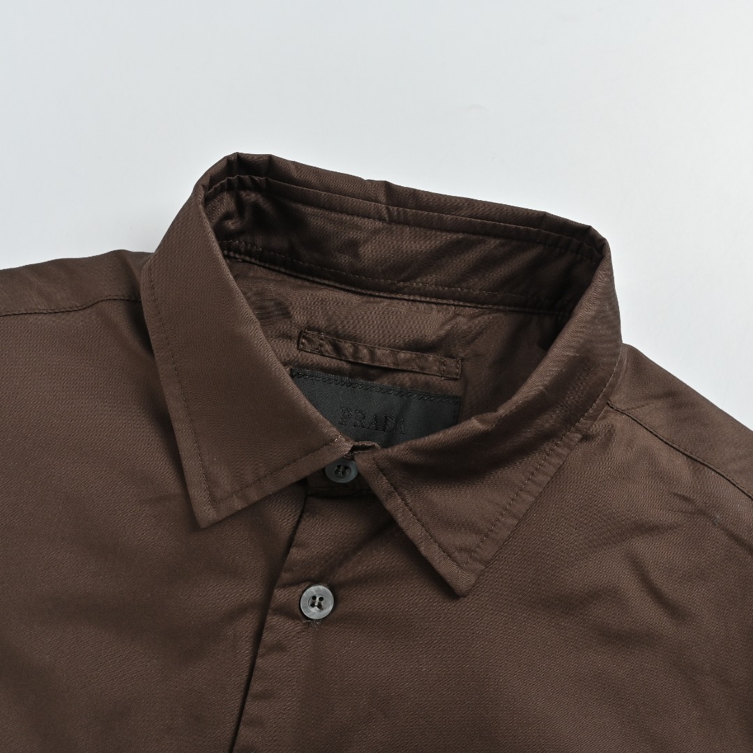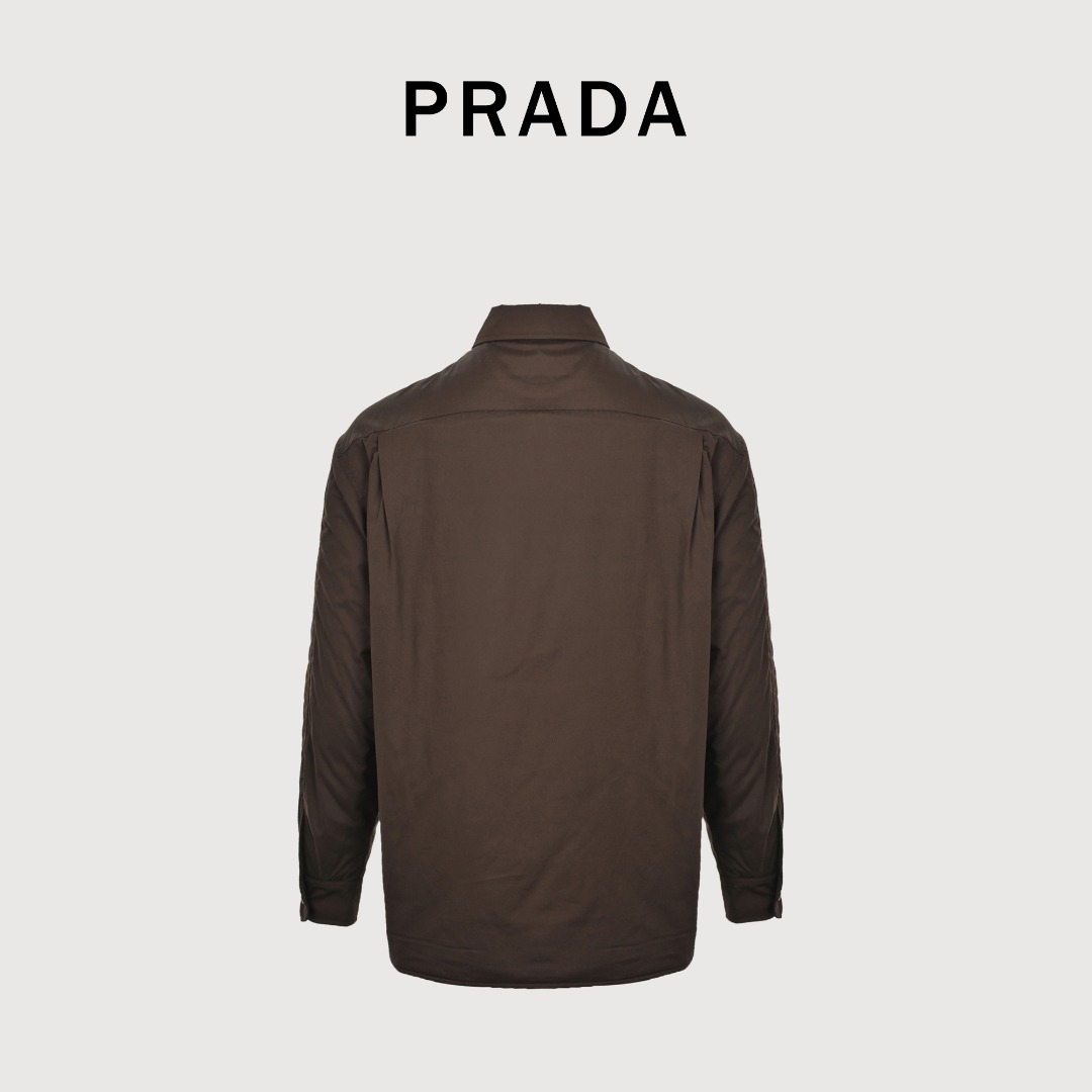 本地自取💰480 Prada/普拉达 口袋倒三角棉服外套 购置原版开发,面料采用200支超高织数纯棉,这款是普拉达在梭织面料中规格最顶级的配置,200支纱线极细,使得面料拥有丝绸般的光泽和异常柔软爽滑的触感,同时保持了纯棉材质的透气性。市面上常见的衬衫面料多在80-120支之间,200支面料因其织造难度高、损耗大,极为稀有珍贵,原版同源胚布,为确保原汁原味,耗费巨大精力调来了与原版完全一致的胚布,从源头保证了版型、手感和垂坠度的正统性,盛虹集团权威定染,在“世界500强”企业江苏盛虹集团五分厂内完成定染,盛虹集团在染色领域荣获多项国内外技术奖项,其工艺确保颜色饱和纯正,色牢度优异,经多次洗涤仍能保持鲜亮如初,创新复合绗缝结构,内里采用羽绒棉,并创新性地以高密度无纺布将正反棉绗缝在一起,这种结构能有效防止在穿着和洗涤后出现棉结块、移位或钻绒现象,长久保持衣物平整蓬松的形态,纽扣选用天然菊灰贝母,每一颗都需经过精细打磨贝母独特的虹彩光泽会随光线角度微妙变化,使得每颗纽扣都绽放独一无二的光芒,定制辅料三标,男女同款 Size:S-XL
