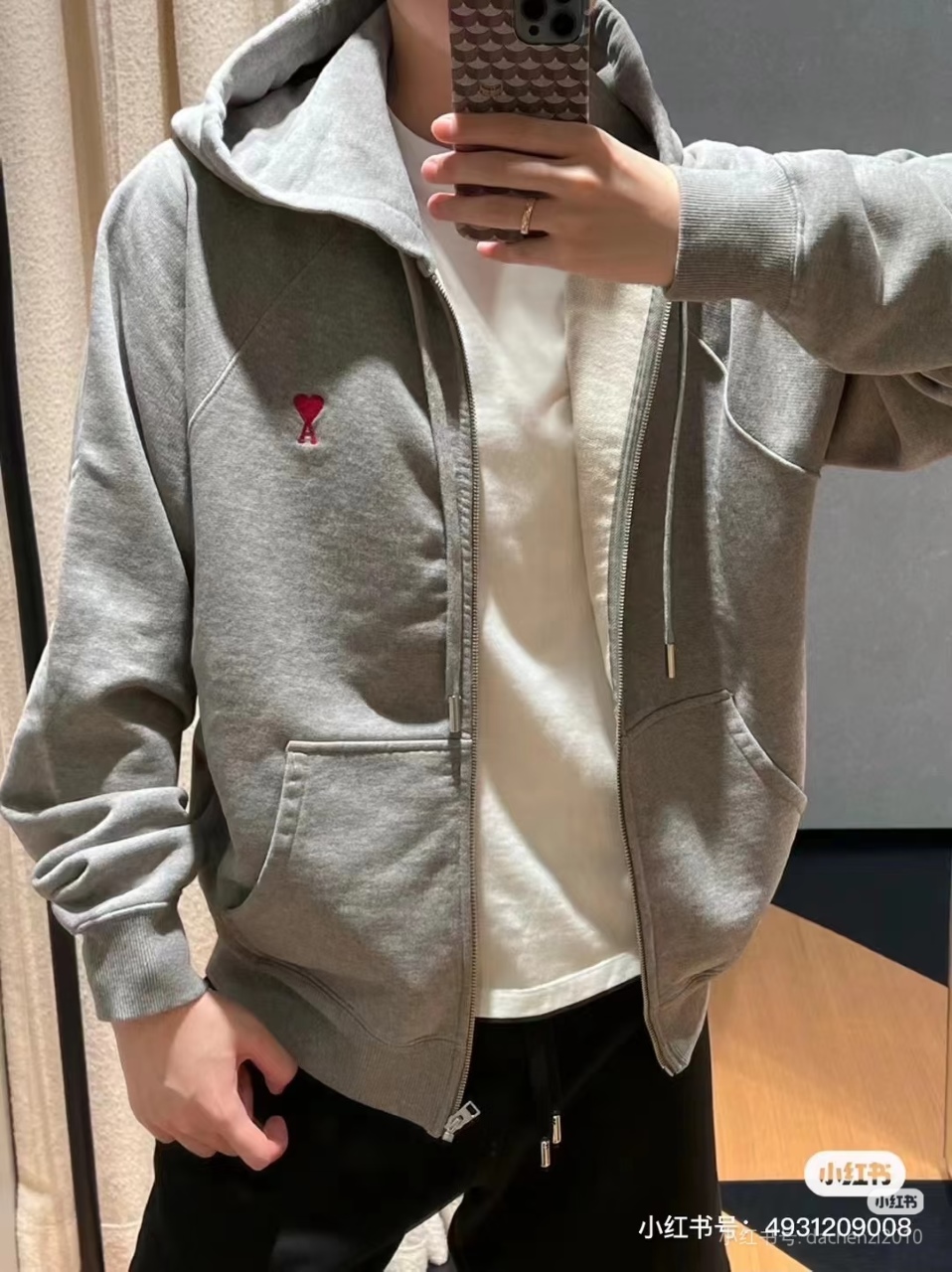 Ami 经典爱心标志刺绣拉链外套 上身效果#