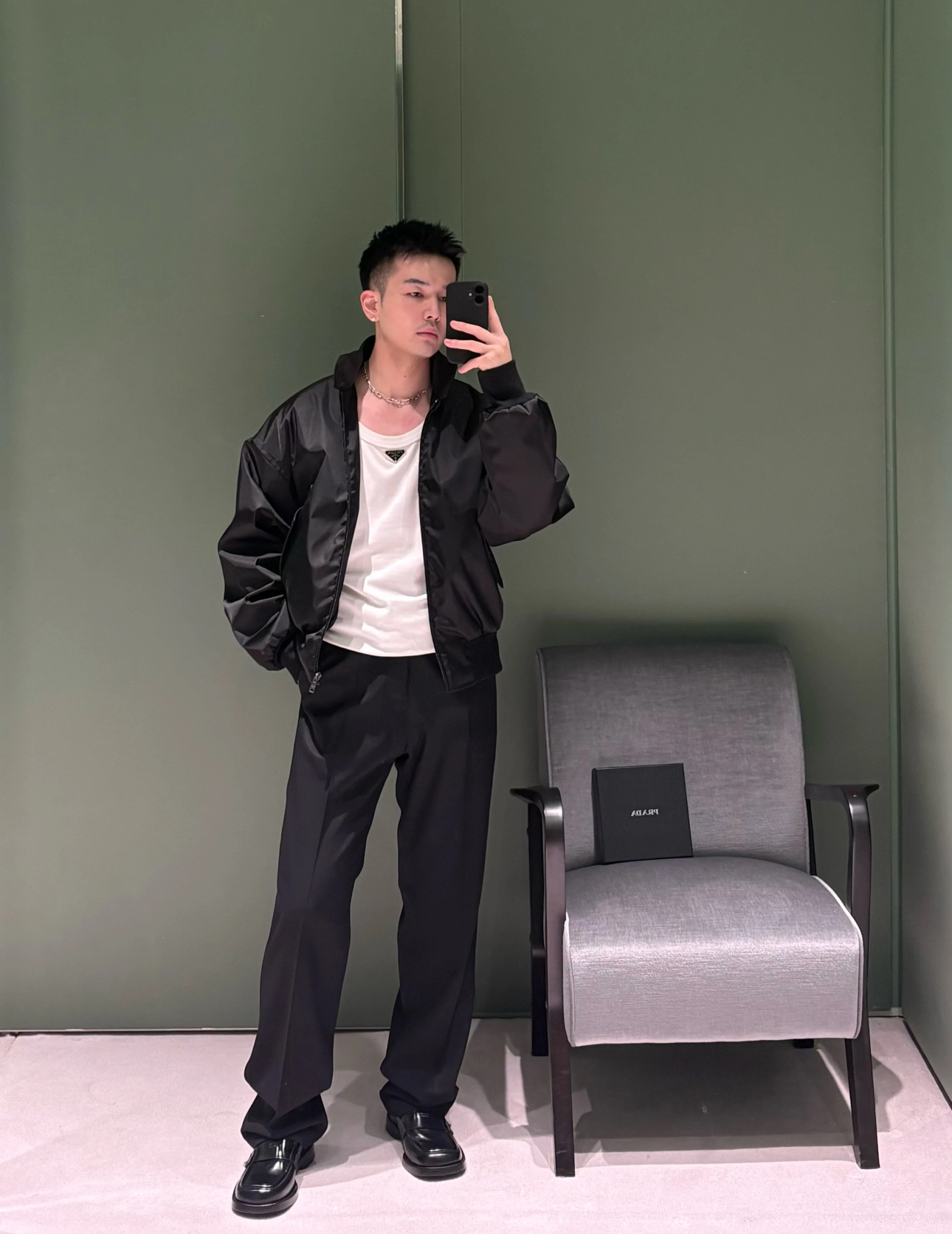 Prada 普拉达 25FW 尼龙立领棉服夹克 上身效果#