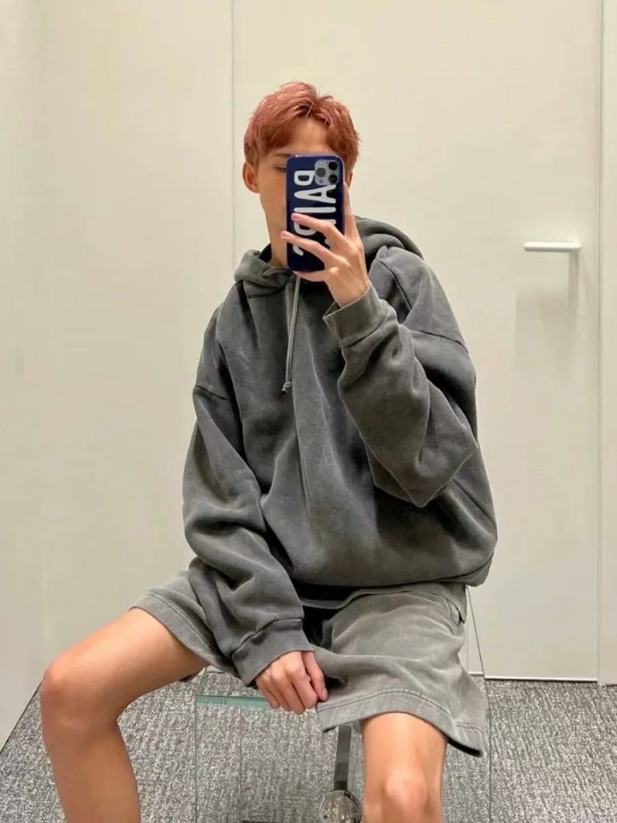Acne Studios 水洗褪色后背小硅胶做旧连帽卫衣 上身效果#