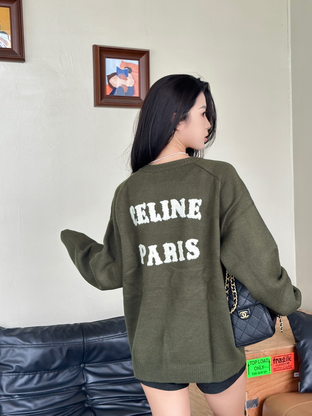 CELINE赛琳 凯旋门及后背字母毛巾绣圆领毛衣 上身效果#