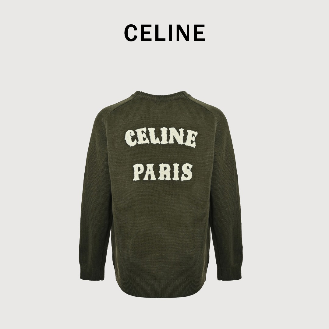CELINE赛琳  凯旋门及后背字母毛巾绣圆领毛衣
