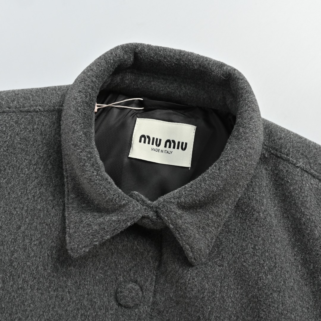 本地自取💰380 MIUMIU 缪缪 25FW 羊绒羽绒衬衫夹克 原27,500购入,定染色织纱线,面纱采用100%羊绒材质,内里填充90国标白鹅绒,充绒量280克,铜氨纤维内里面料特性是贴身舒适亲肤不起球。领口采用同面料常规双层衬衫领口,左右领口格纹对位规整。采用定制原衣刀模切割贴片字母,先车缝开模具手剪出形状经过人逐个字母贴出来完美后用针车沿着边缘车缝。独立开发衣身同色羊绒纽扣。三标辅料全套配齐,各路明星网红上身爆款,实力种草。 尺码: 36 38 40 42