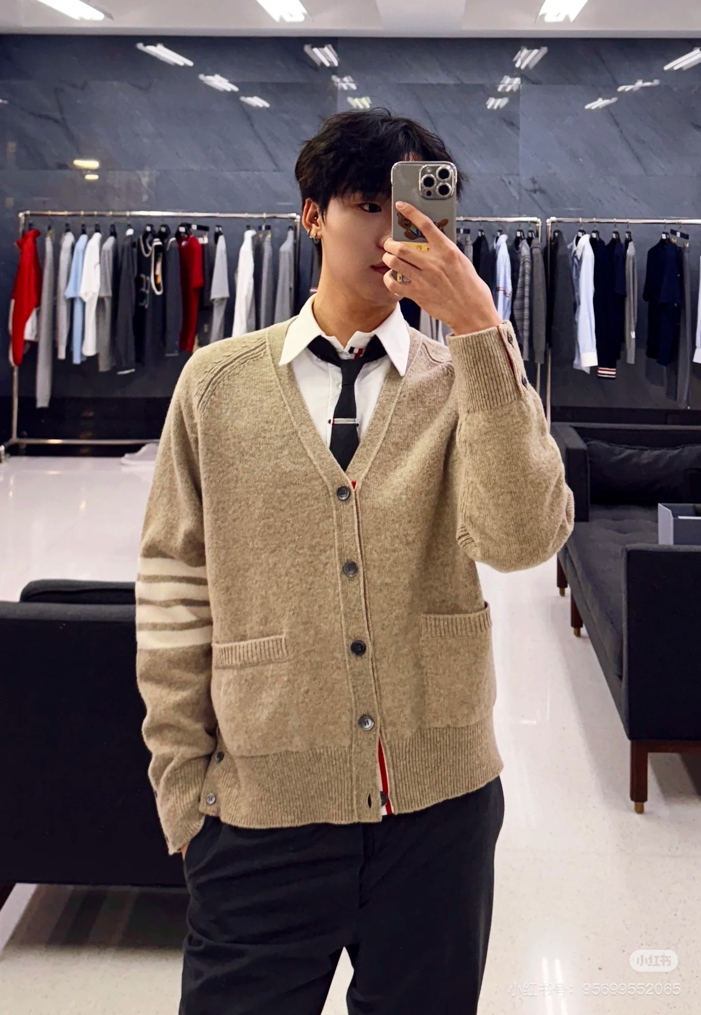 Thom Browne 25Fw K32卡其四杠开衫外套 上身效果#
