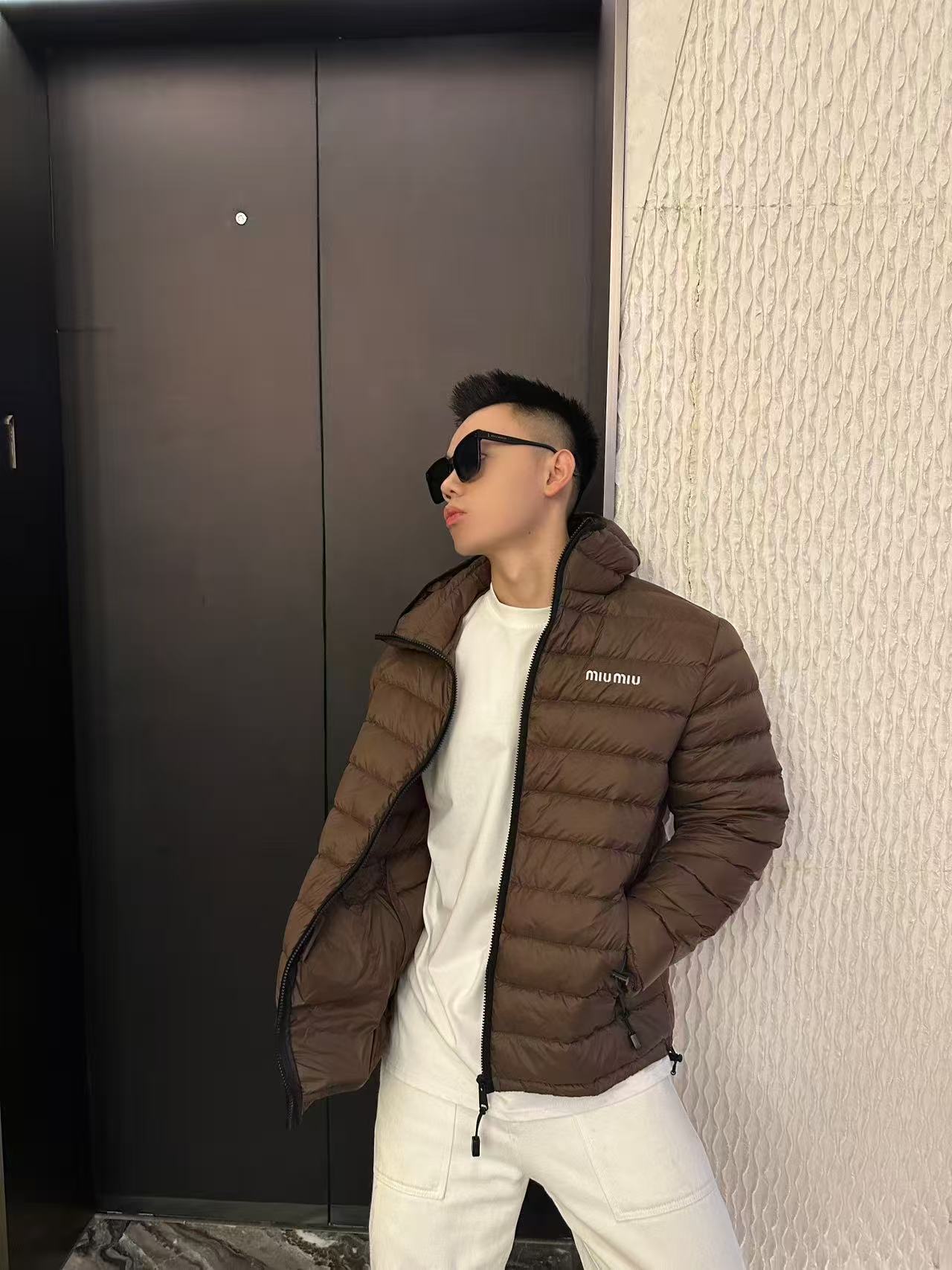 MIU MIU缪缪MM 字母刺绣连帽羽绒服 上身效果#