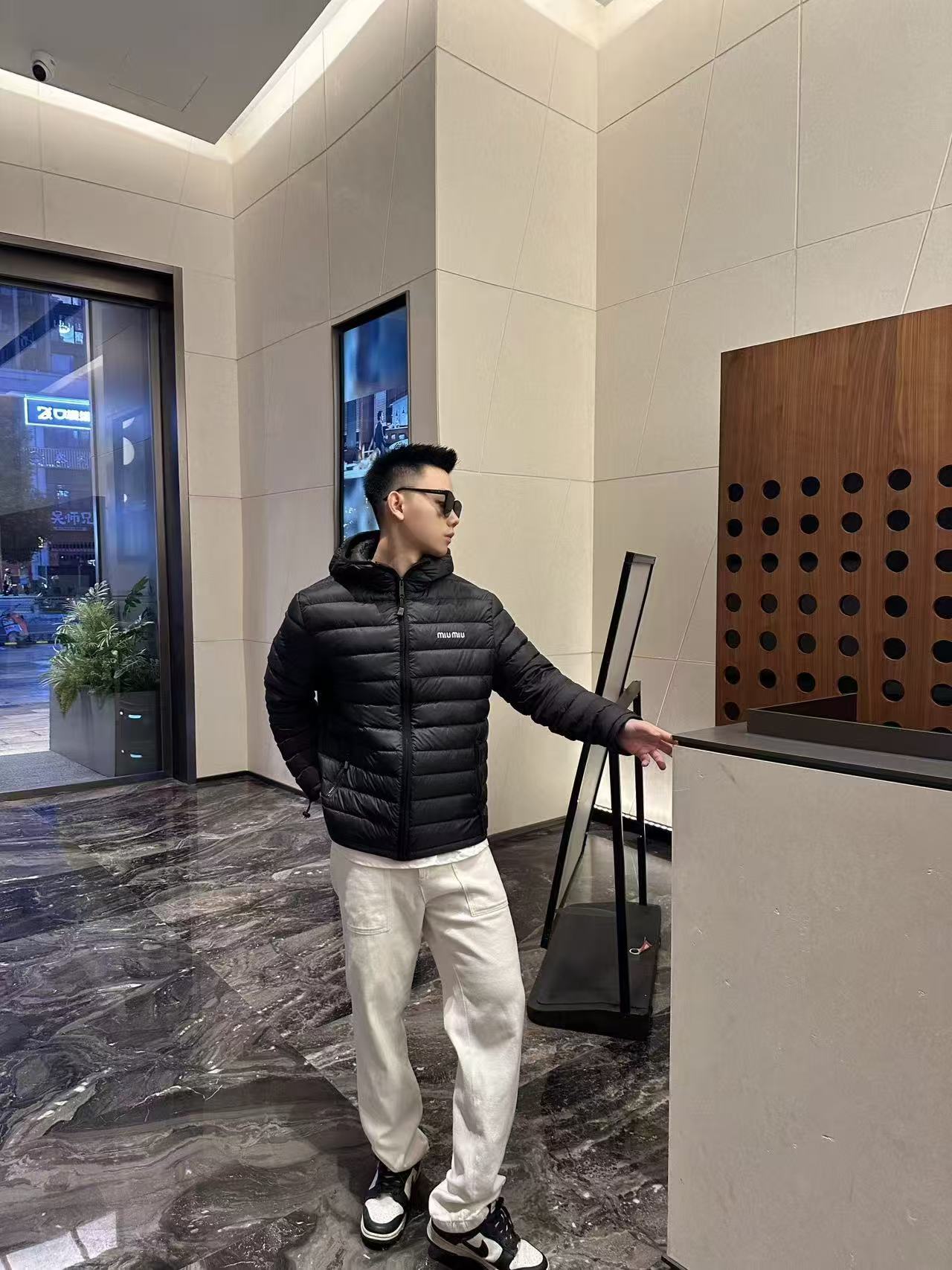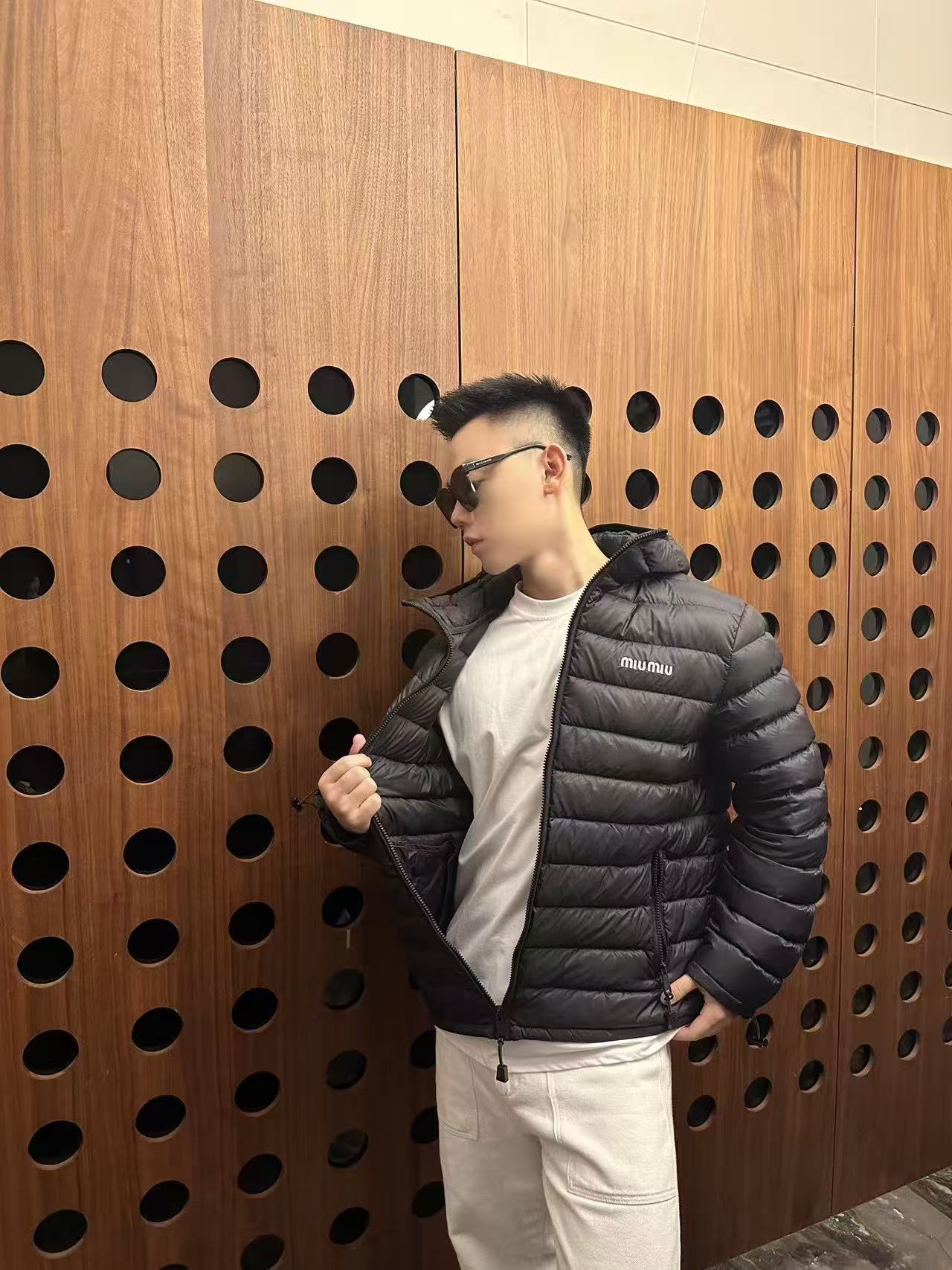 MIU MIU缪缪MM 字母刺绣连帽羽绒服 上身效果#