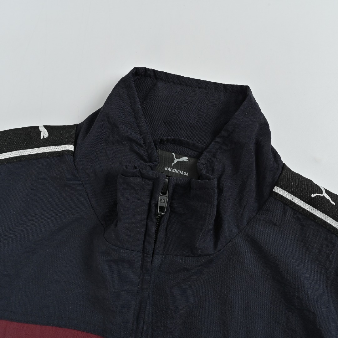 本地自取💰340 BALENCIAGA巴黎世家BLCG X PUMA彪马 联名做旧套装运动外套 基底材质是棉质混纺针织面料,提供亲肤、透气、舒适的穿着感。增强面料的耐用性、保形性和抗皱能力,并赋予其经典运动服的光滑感和挺括感。款式进行了手工打磨,衣服上出现的破洞、毛边和磨损并非随意为之。它们的位置、大小和形态都经过精心设计,模仿的是长期穿着后自然磨损的状态。破洞边缘的纱线松散,形成毛躁的须边,增加了视觉上的“年代感”。衣服的颜色不是均匀的,而是在手臂、肩膀等容易产生摩擦的部位,出现自然的、深浅不一的褪色效果。男女同款 Size:XS-L