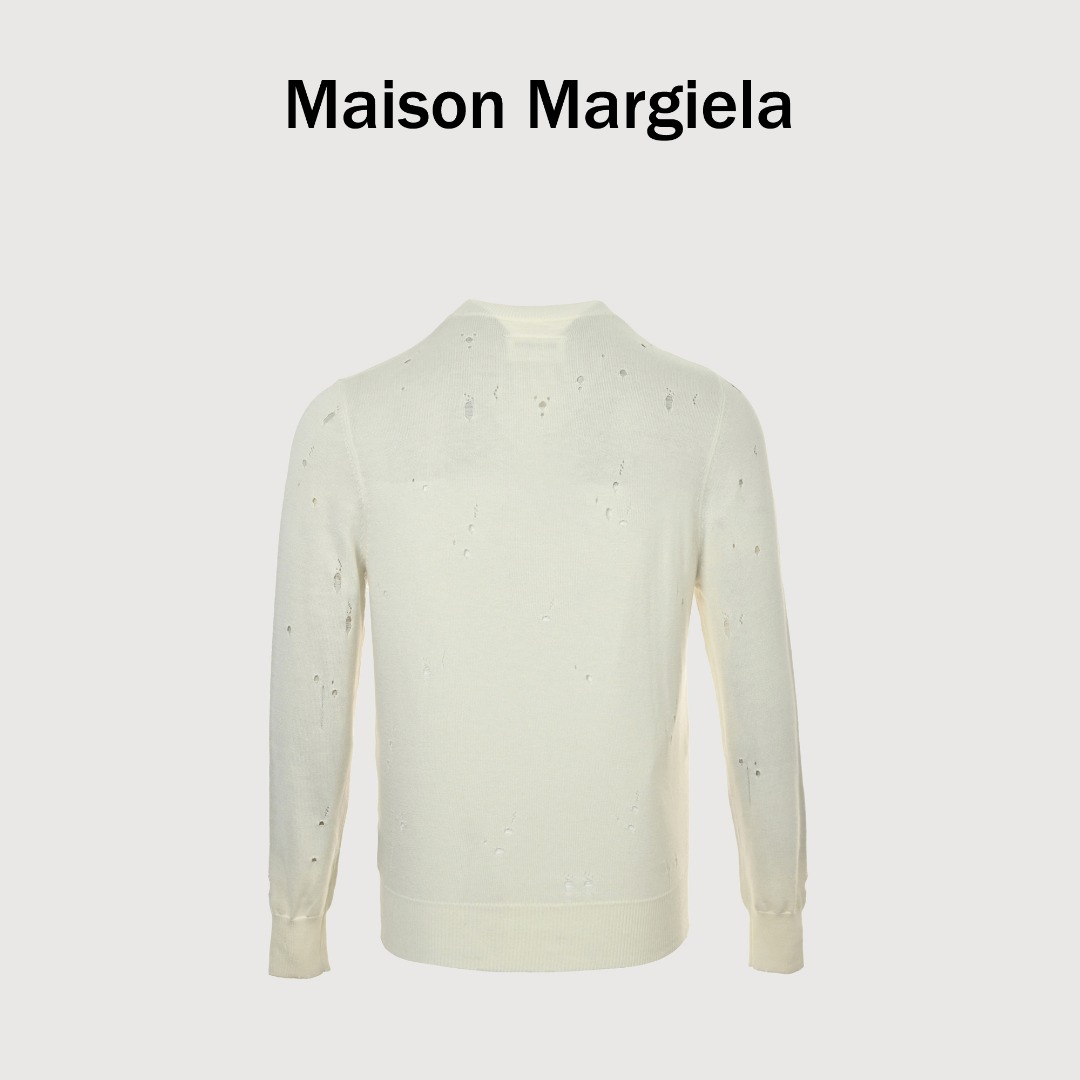 本地自取 💰240 Maison Margiela/马吉拉 25Fw 数字提花破洞毛衣 定织羔羊绒 亲肤细腻,以三大工艺造高级感——手工抽针抽离纱线,形成不规则镂空;德国机提花织品牌数字图案,立体生动;成衣洗水加软去味,手感更优。数字点缀与破坏性设计碰撞! Size:S-XL