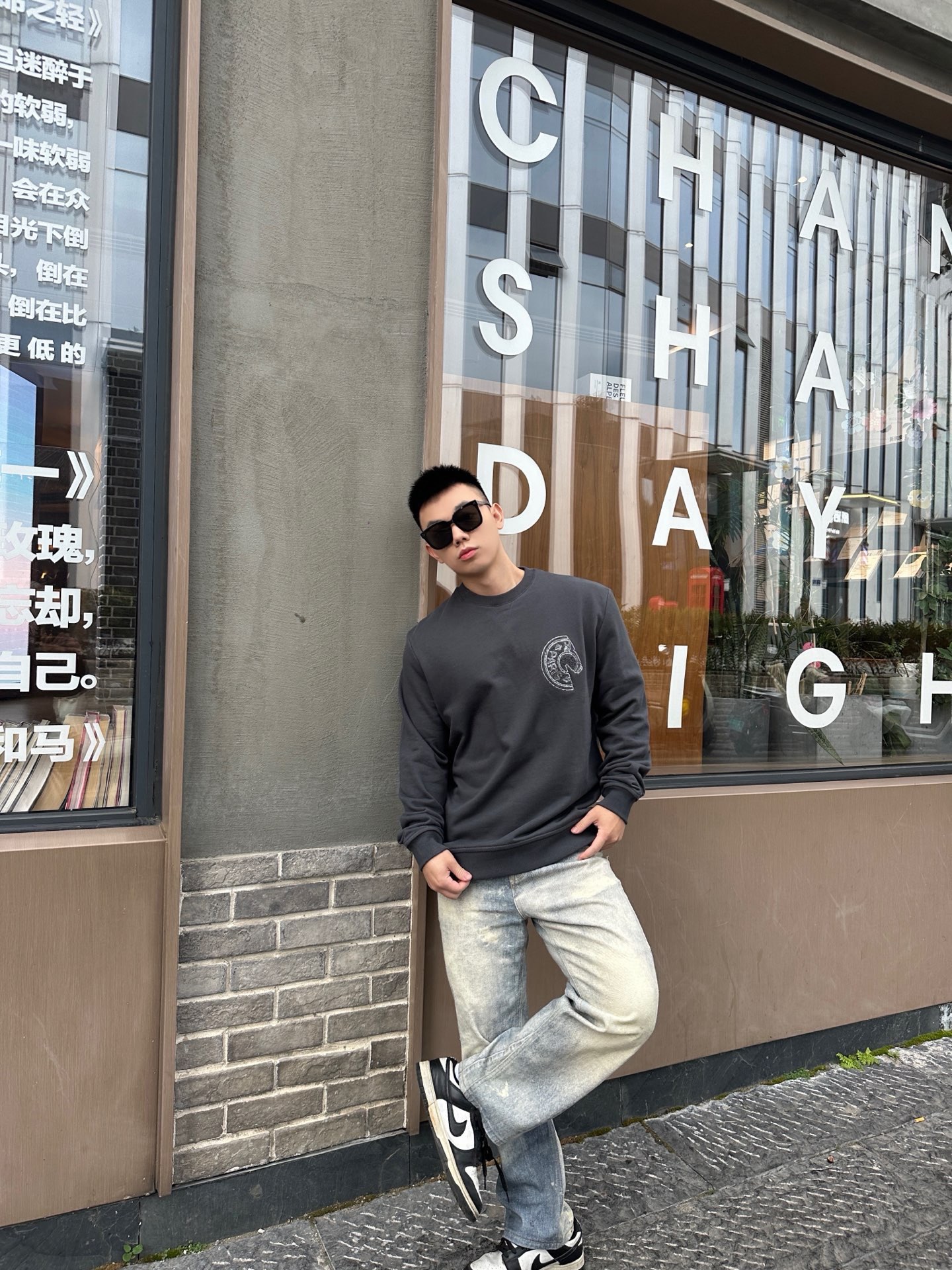 Hermes/爱马仕 马鞍钉贴饰圆领卫衣上身效果#