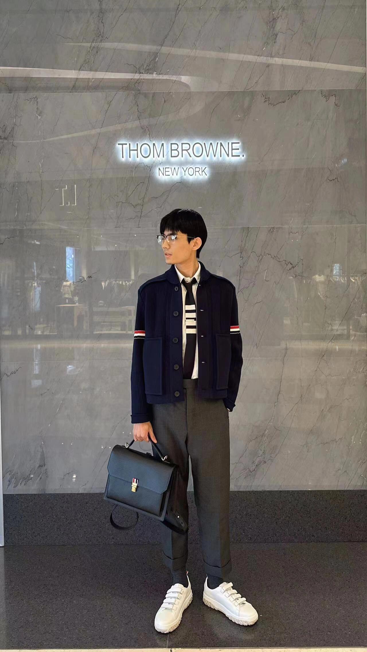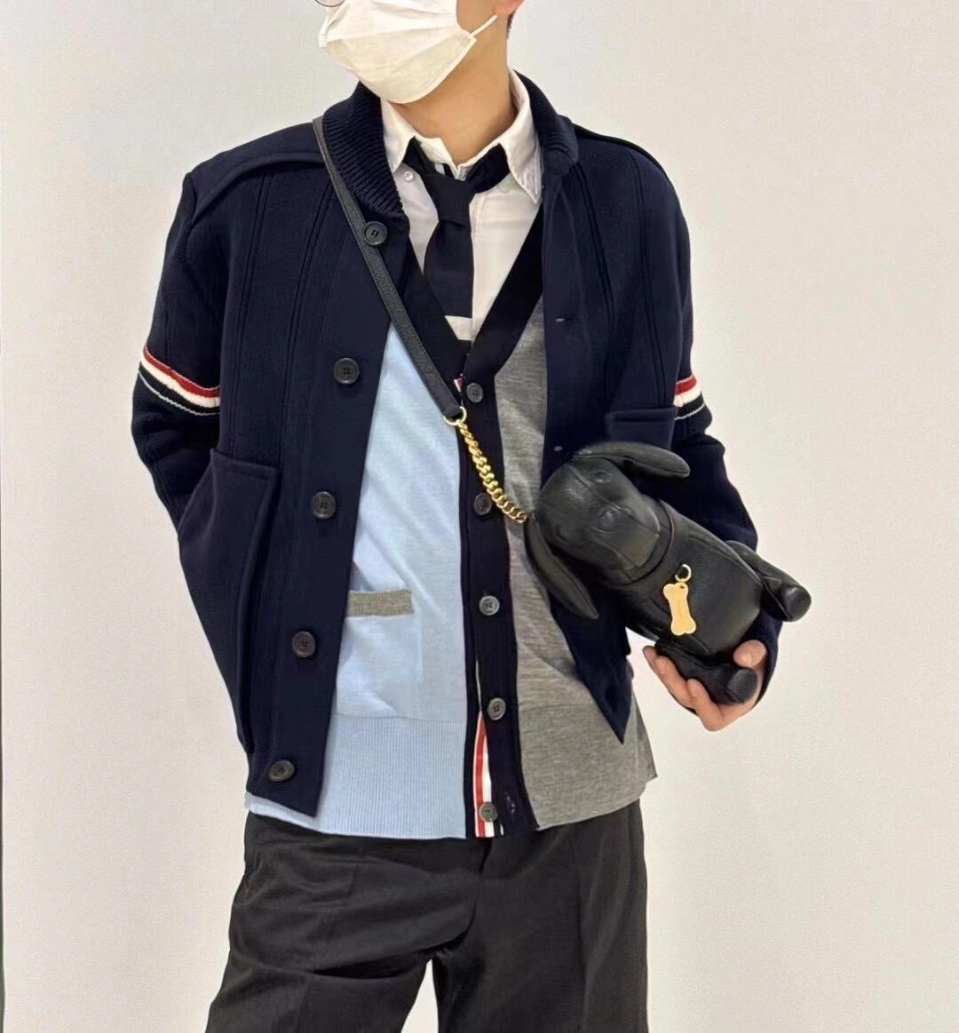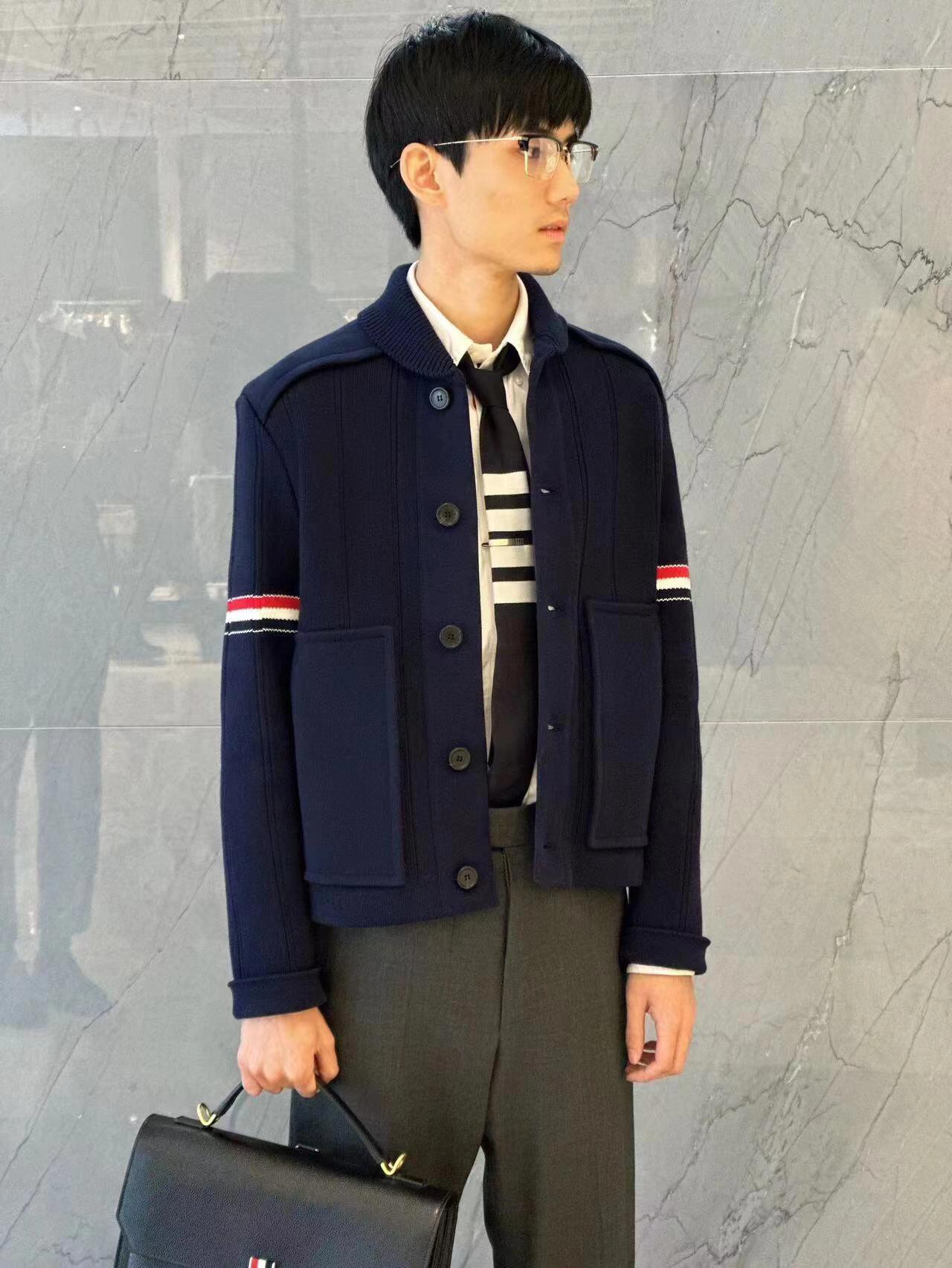 THOM BROWNE TB 汤姆布朗 24FW 竖条纹夹克外套 上身效果#