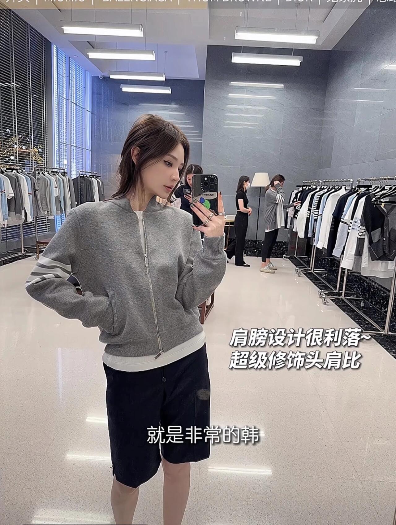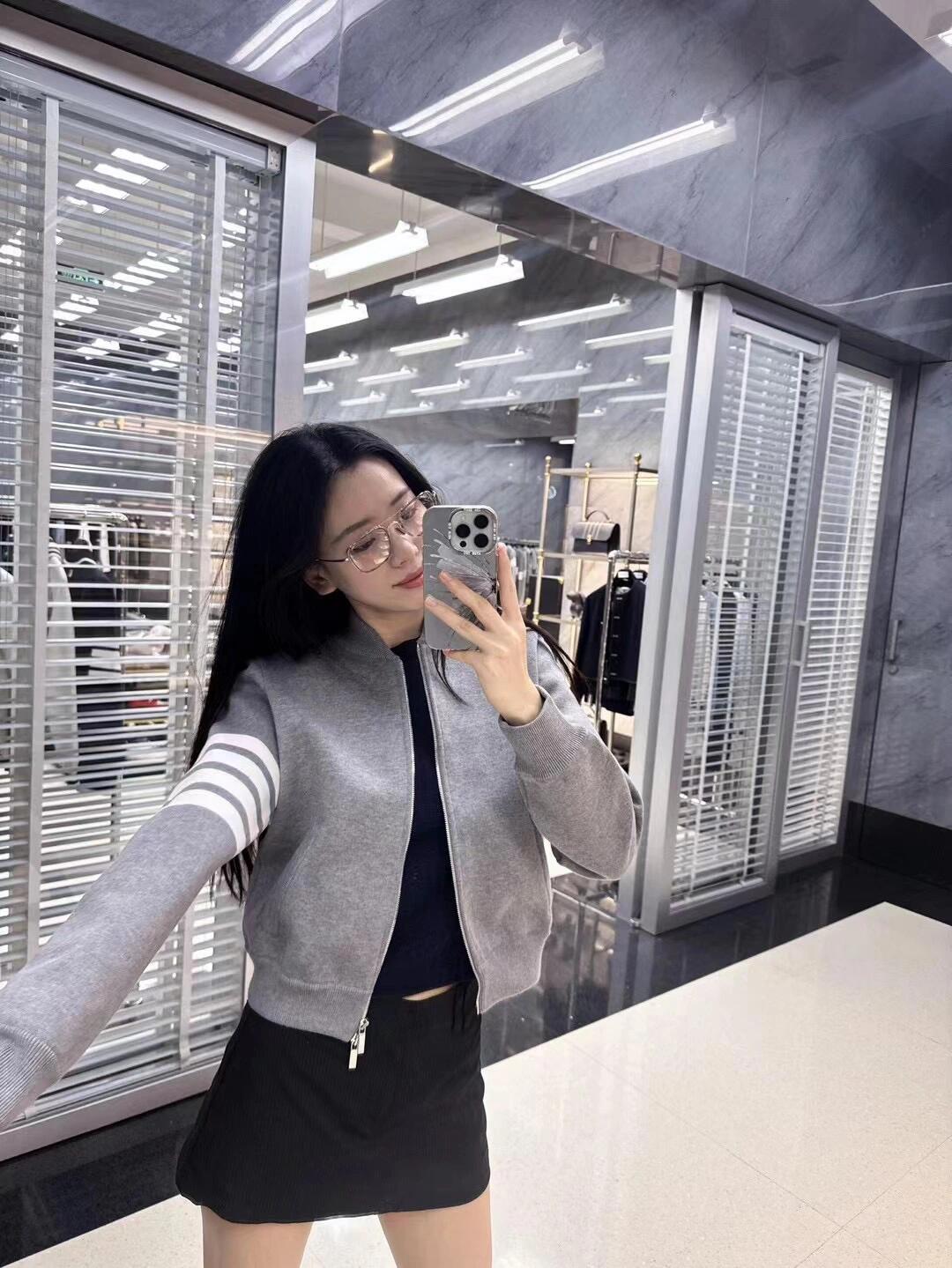 THOM BROWNE TB 汤姆布朗 24FW 孔雀拉链棒球服外套 上身效果#