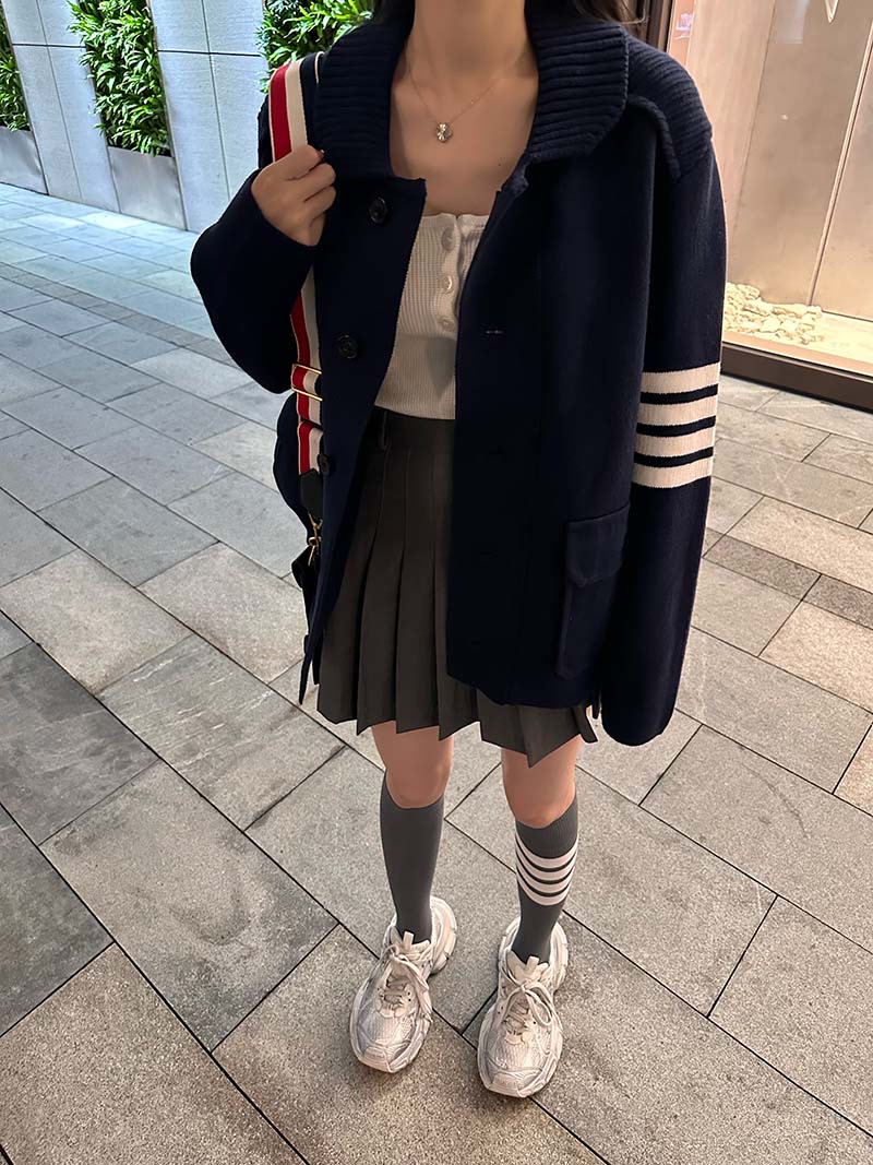THOM BROWNE TB 汤姆布朗 23FW 短款羊毛夹克 上身效果#