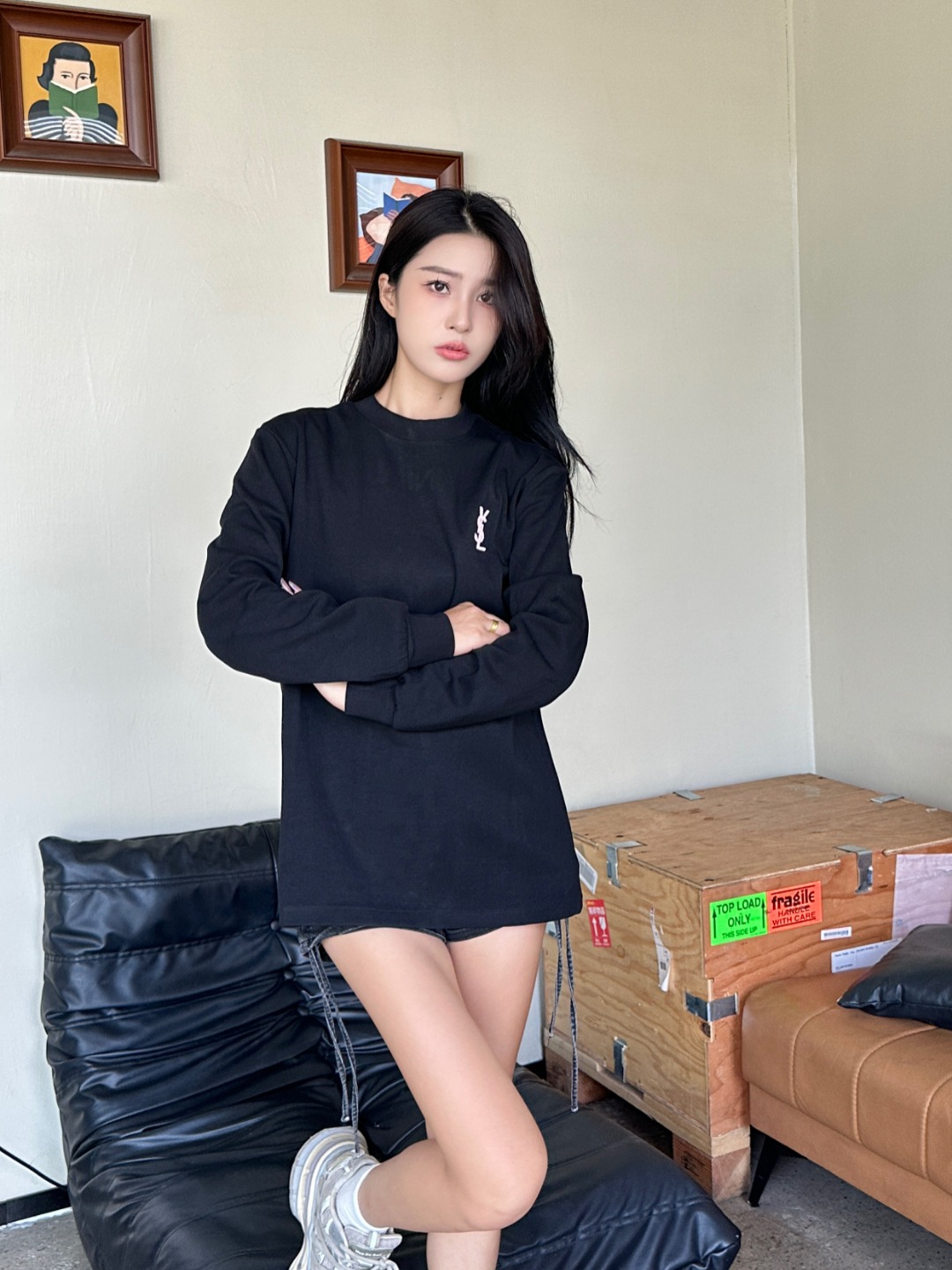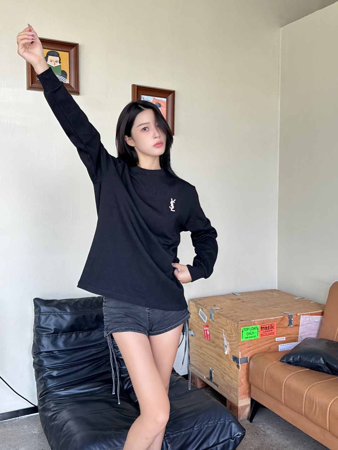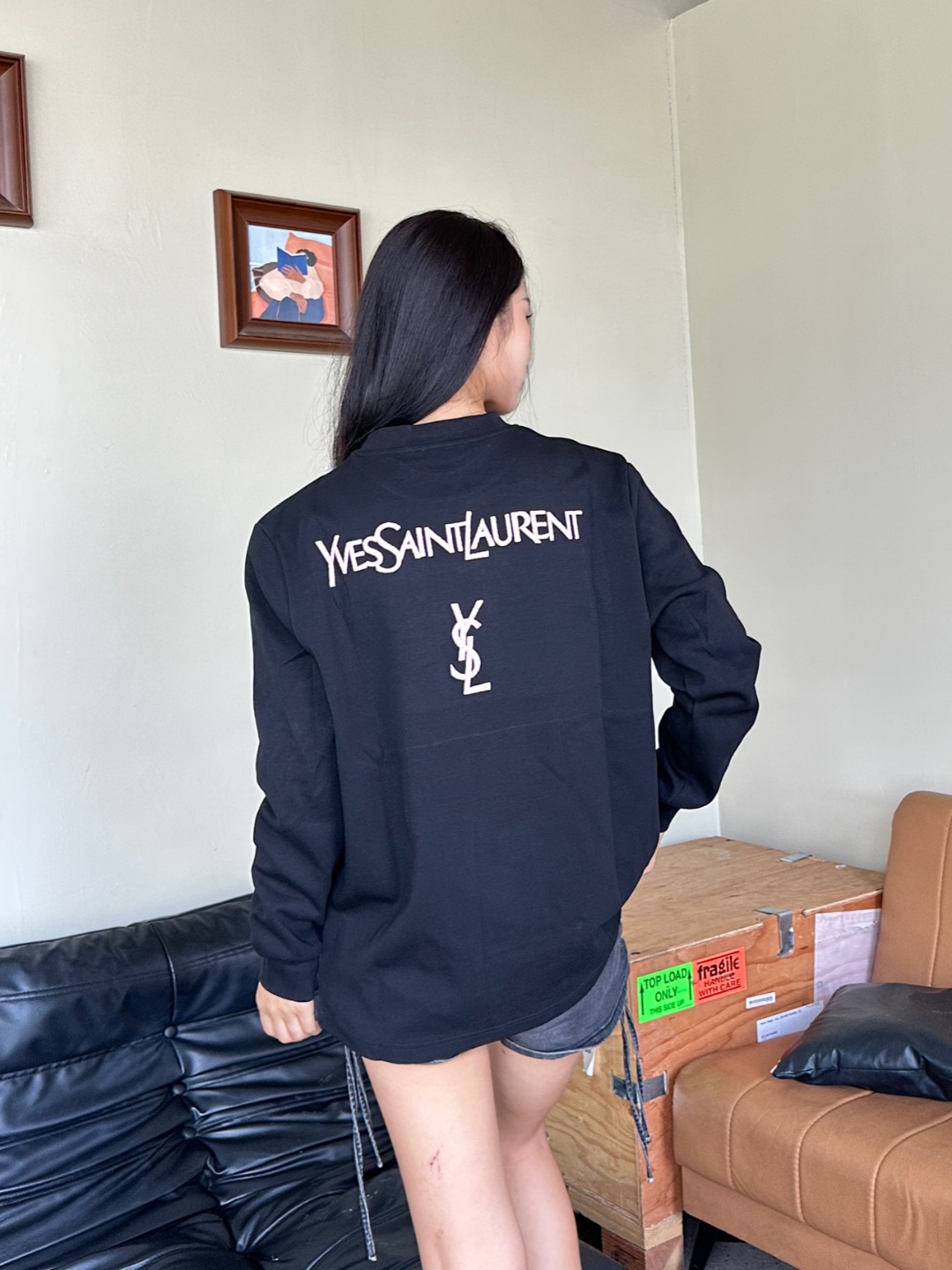 SAINT LAURENT/圣罗兰 25Fw 后背字母logo刺绣长袖T恤 上身效果#