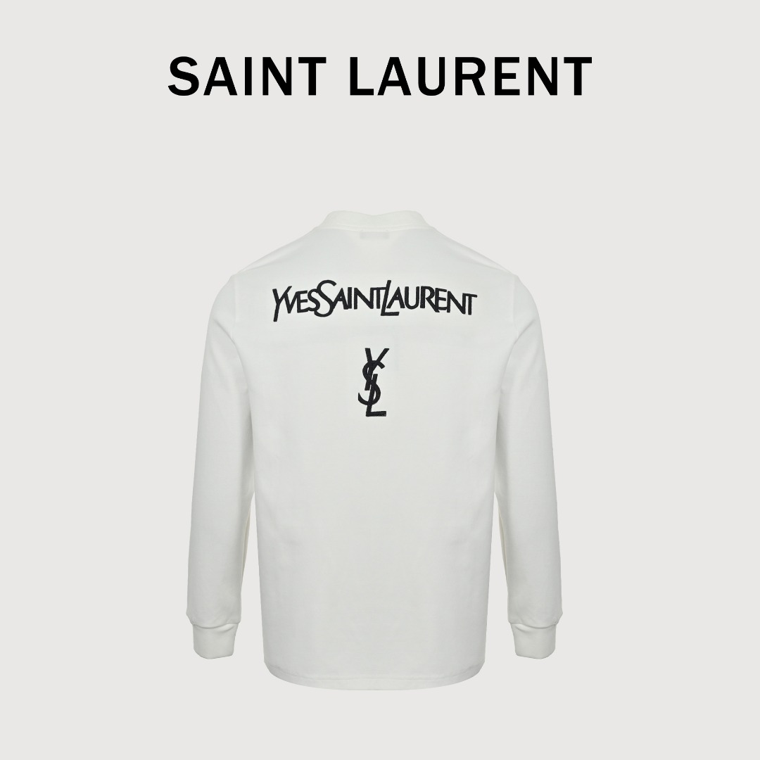 本地自取💰160 SAINT LAURENT/圣罗兰 25Fw 后背字母logo刺绣长袖T恤 定织定染 水洗柔滑长绒棉、克重310克、最新专柜款,打底衫长袖 胸前及后背logo字母立体刺绣 田岛进口高密度刺绣工艺, 色彩鲜明,线条感十足,彰显经典大方。上身效果满分! 颜色:黑色,白色 Size: M-XXXL