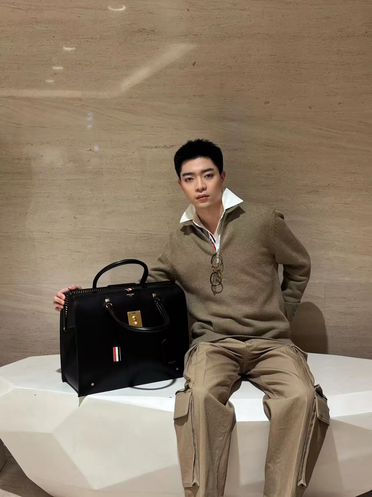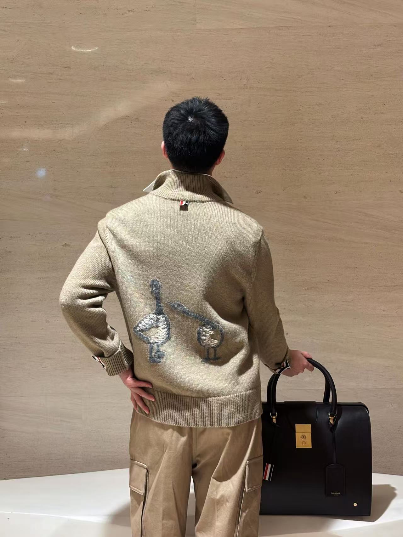 THOM BROWNE 汤姆布朗 TB 25FW 大鹅半拉链毛衣 上身效果#