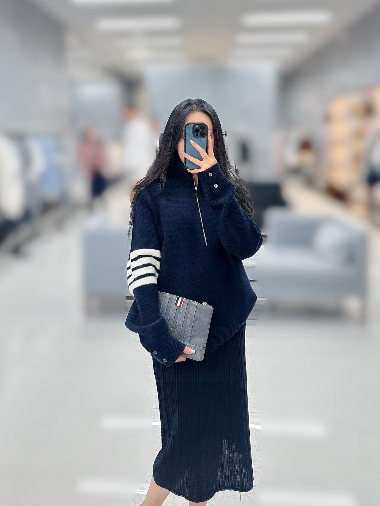 THOM BROWNE 汤姆布朗 TB 25FW 四杠半拉链毛衣 上身效果#