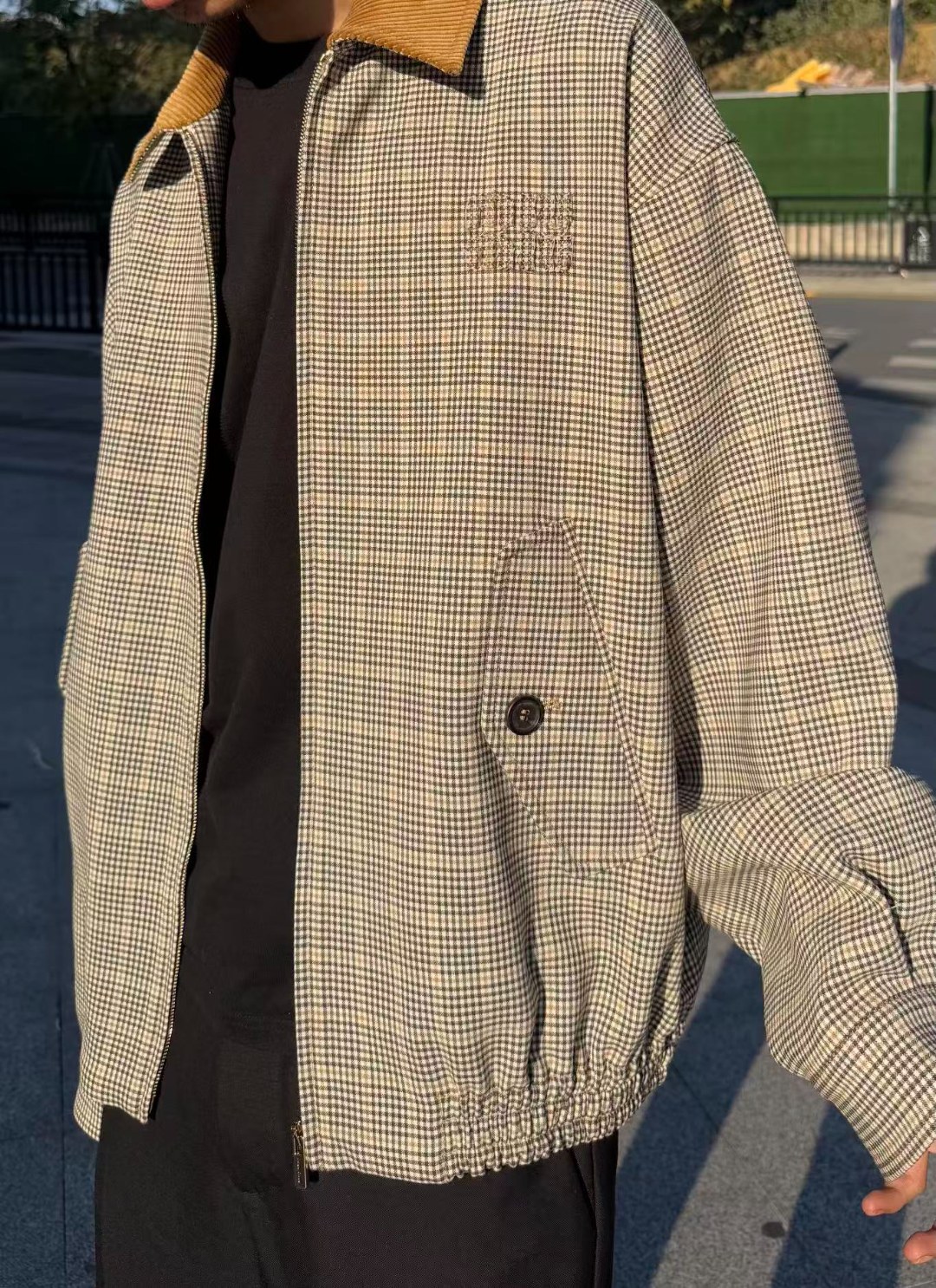 MIUMIU 缪缪 25FW 灯芯绒领格纹夹克外套 上身效果#