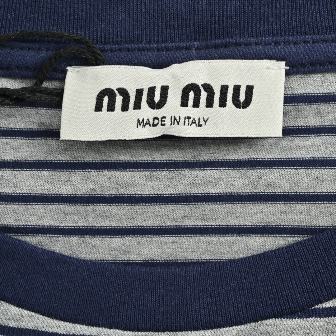 本地自取💰180 MIU MIU缪缪MM 灰条纹长袖T恤 定制奢华60支双股高密条纹料,人体学立体裁剪 ,手工红外线画线贴袋,口袋位置的精准定位与标记,面料都经过浇洗,手感质感更佳,不易变形,不易缩水,不易褪色, 定制商标,宽松版型 Size:XS-L