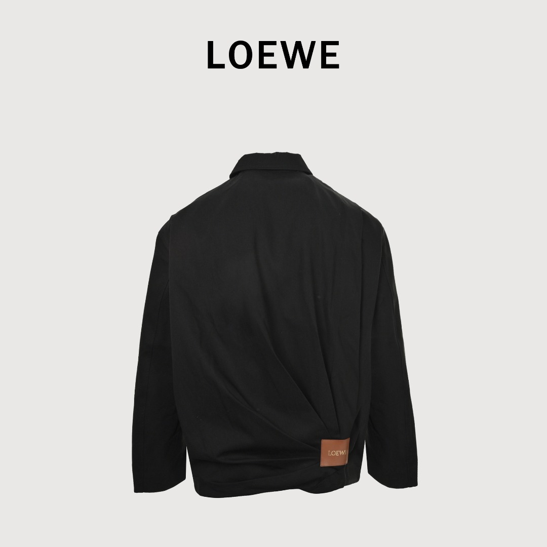 本地自取💰340 Loewe/罗意威 25Fw 后皮标褶皱夹克外套 定织定染日本进口羊毛醋酸混纺面料,从纱线的混纺比例、织法的结构到最终的色彩,都为其独家所有,确保了作品的独特性和不可复制性,羊毛提供了西装所需的骨架感、回弹性和天然的高级光泽,确保衣物在穿着后能迅速恢复形态,醋酸纤维拥有类似真丝的垂坠感、滑爽手感和光泽度,但比真丝更易于打理且稳定性更好,将羊毛的挺括与醋酸的垂坠相结合,需要精准的混纺比例。这需要通过反复实验,找到既能支撑起后背雕塑感褶皱,又能实现如瀑布般流畅垂感的“黄金点”。这种面料本身就是一项复杂的纺织科技成果,“后背垂感褶皱工艺”是整件西装的视觉焦点和高阶工艺的核心体现,是“重工”之所在,后背的褶皱通过立体剪裁完成,经过抓褶、固定、调整,创造出既符合人体工学,又具有建筑美学的立体形态,每一个褶的深度、方向和松紧都经过精确计算,此工艺的至高难度在于,它需要在静态时是一件轮廓优美的装饰雕塑,而在动态时(穿着者行走、转身时)褶皱能随之流动、展开再聚拢,形成动态的美感。这要求设计师对面料的悬垂性和弹性有极深的认知,为了维持褶皱的永久形态,在西装内部(如衬里与面料之间)必然存在一套复杂的手工缝定、内部省道或特制粘合衬固定系统。这些隐藏的工艺确保了褶皱不会在穿着或洗涤后变形或消失,这需要耗费大量工时,使用“定制真牛皮”而非普通皮革或布标,其目的在于提供无与伦比的触感和视觉厚度。小牛皮通常细腻柔软,拥有天然的皮纹,彰显品质,皮牌上的品牌标识采用热压印完成,以确保图案清晰、持久且手感平整。边缘的切割、打磨和缝线方式(如手工缝定或精准的机缝)都经过深思熟虑,使其成为内部美学的一部分,而非一个简单的标签,定制辅料三标,男女同款 Size:44 46 48