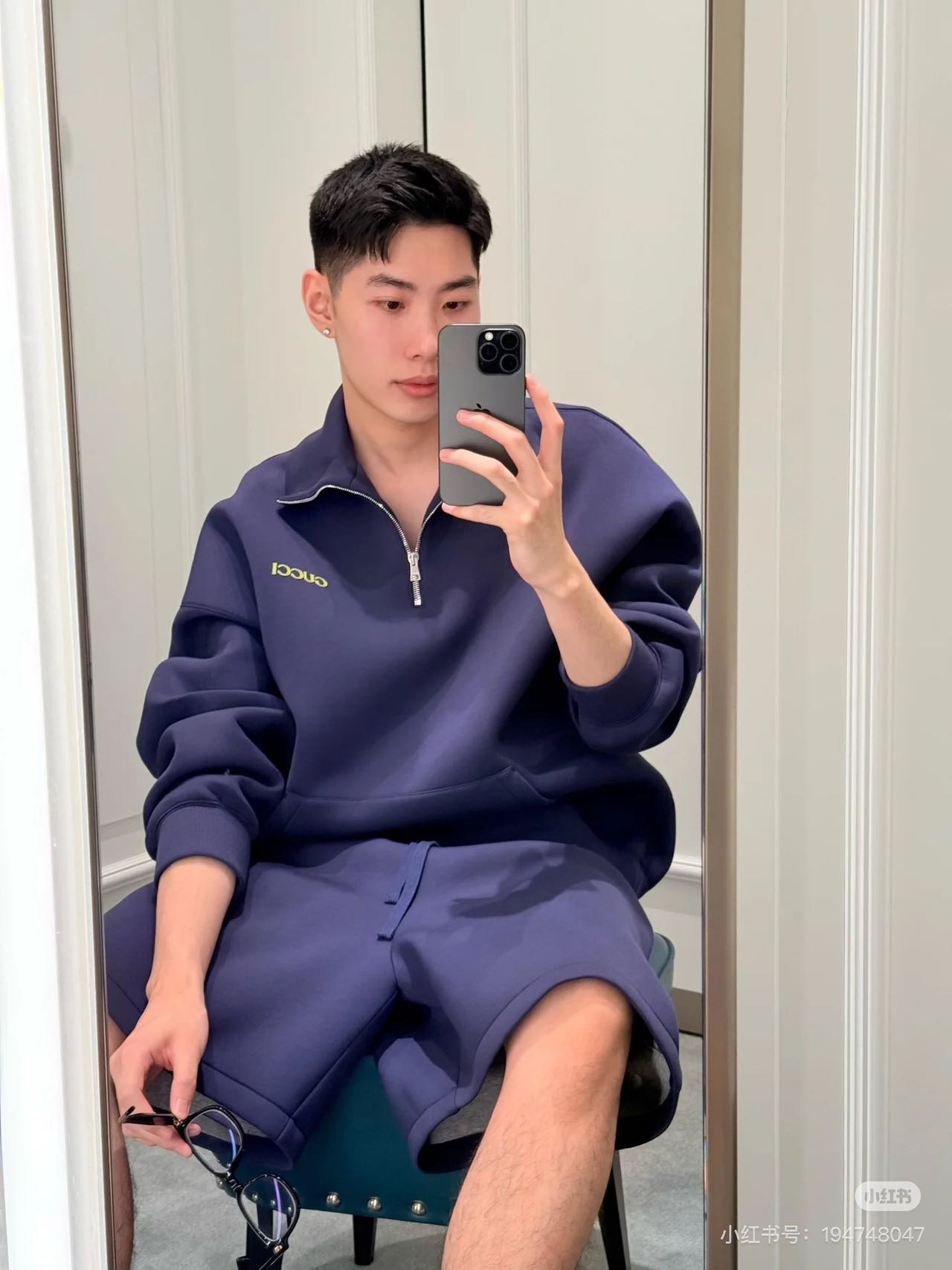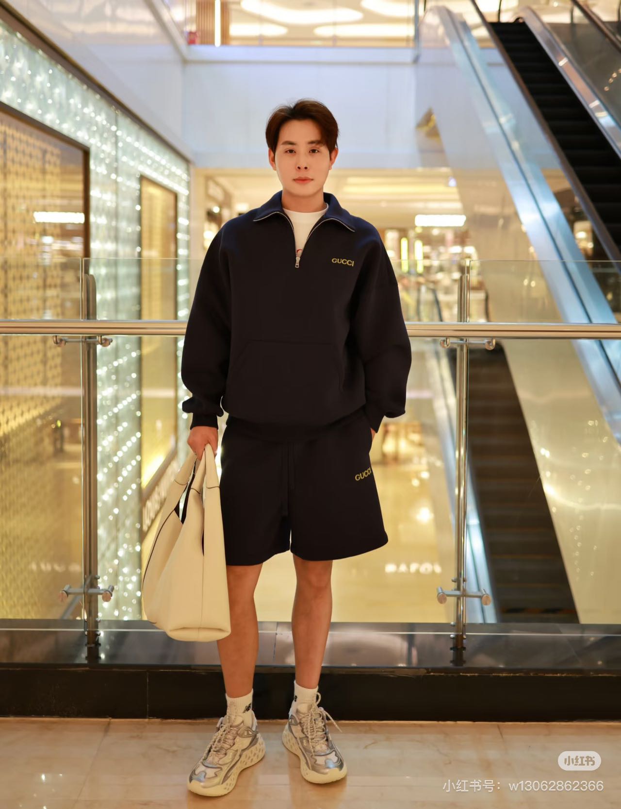 Gucci/古驰 25Fw 刺绣徽标太空棉套装半拉链卫衣上身效果#