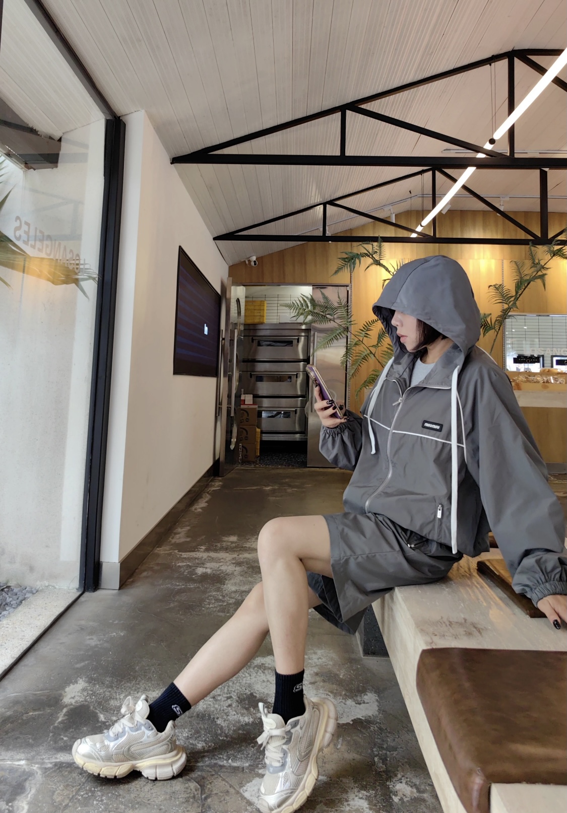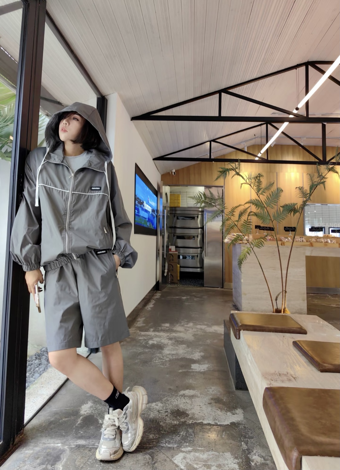 Miu Miu/缪缪 25Fw 小标连帽风衣夹克外套上身效果#