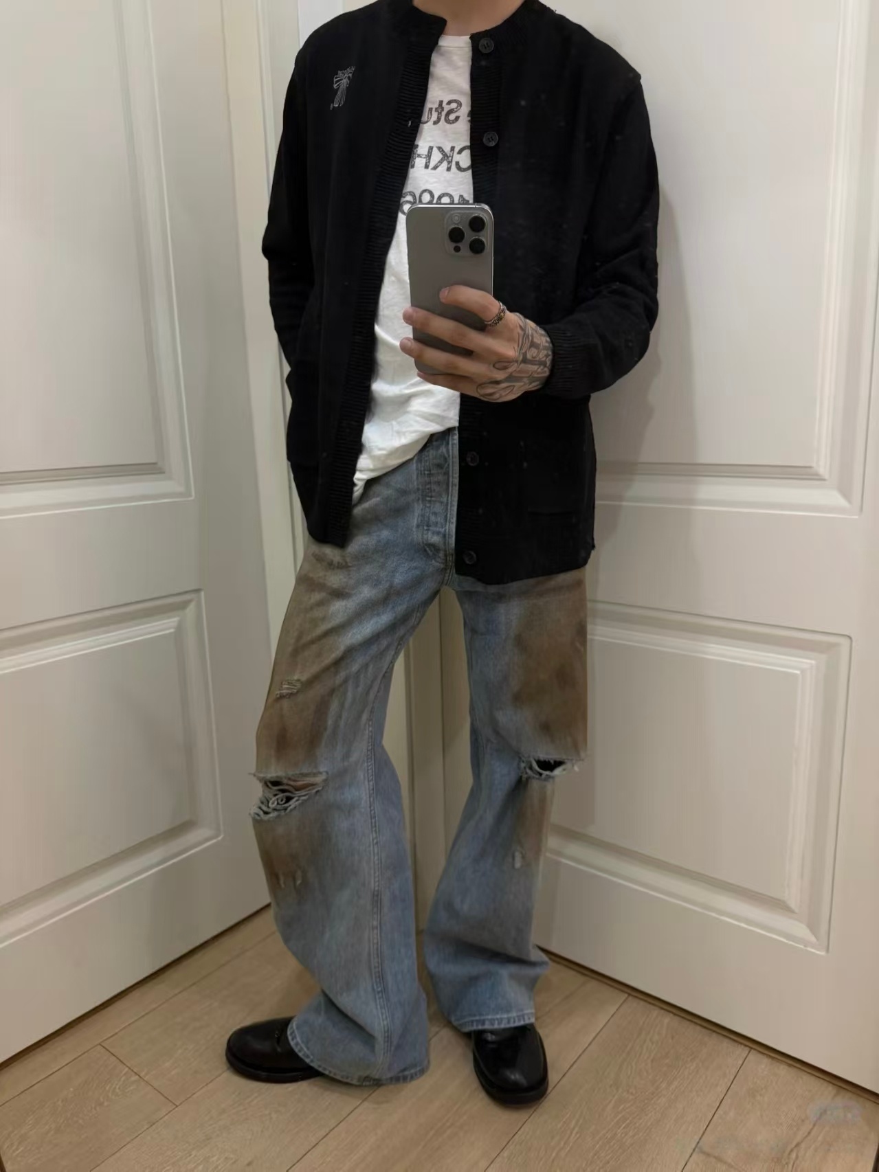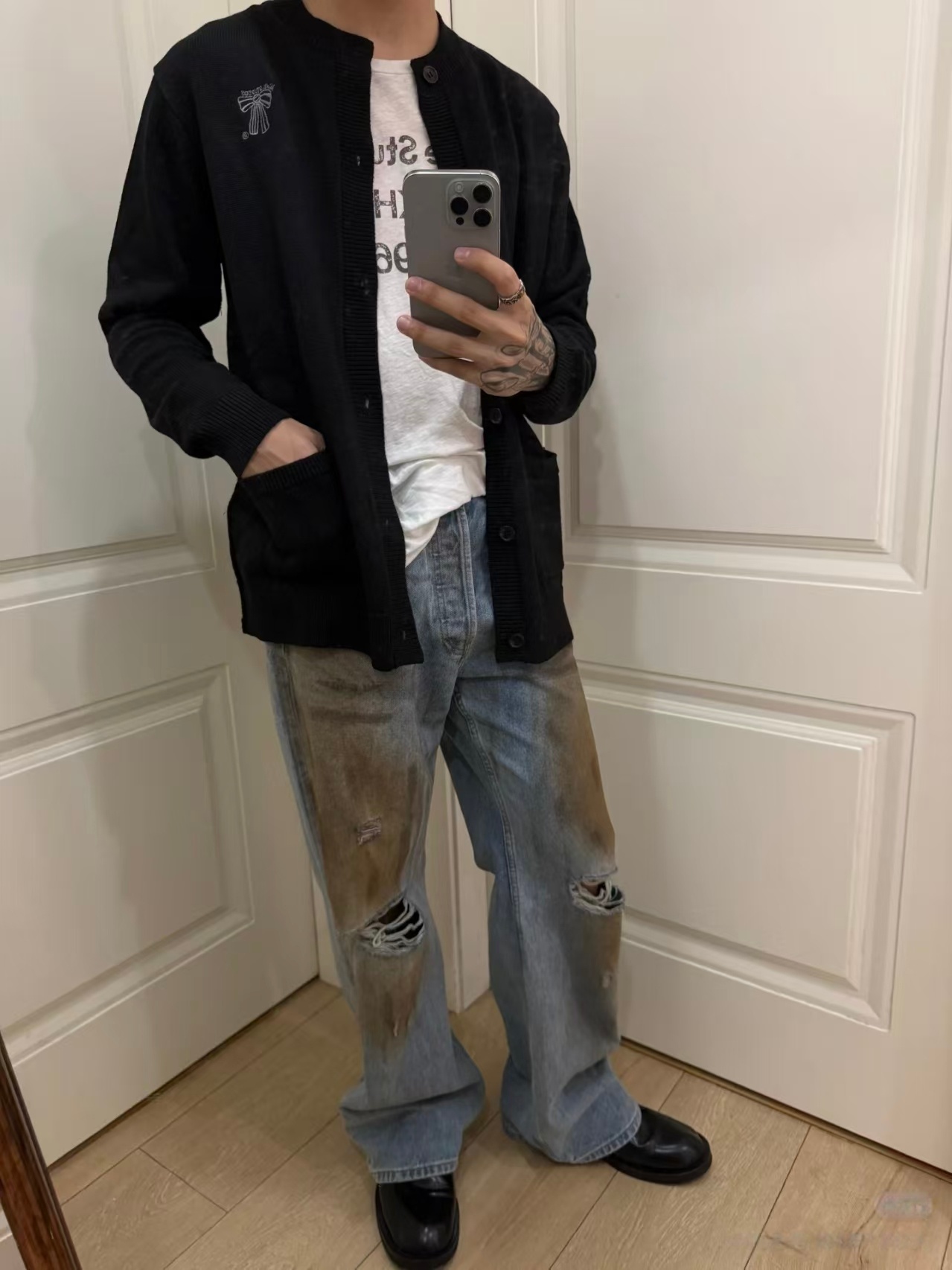 ACNE STUDIOS 蝴蝶结刺绣针织开衫 上身效果#