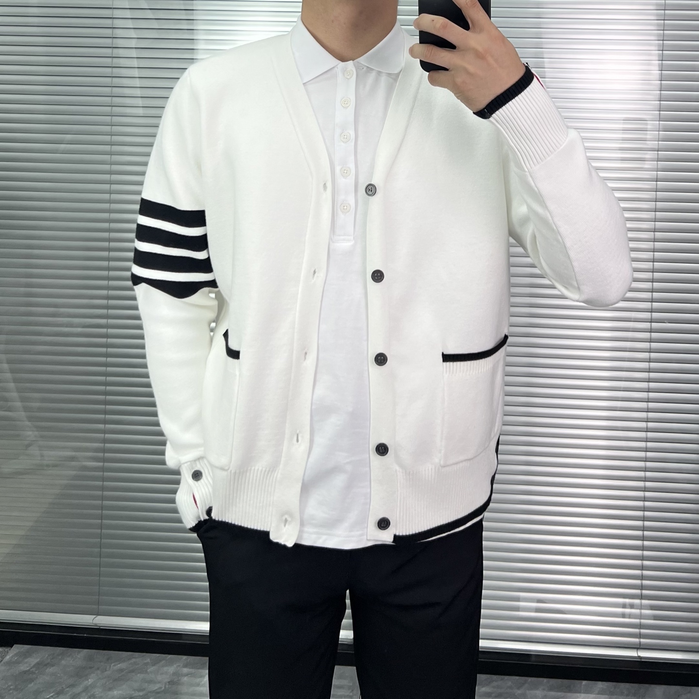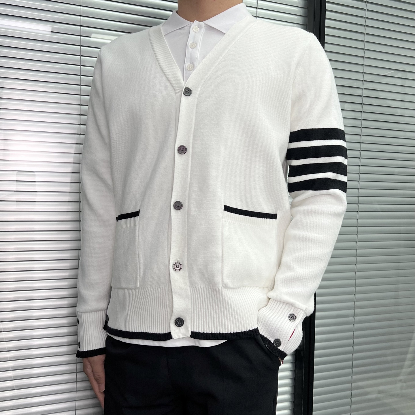 Thom Browne/汤姆布朗 25Fw 前短后长羊毛开衫外套 上身效果#