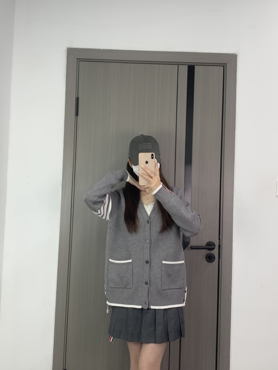 Thom Browne/汤姆布朗 25Fw 前短后长羊毛开衫外套 上身效果#