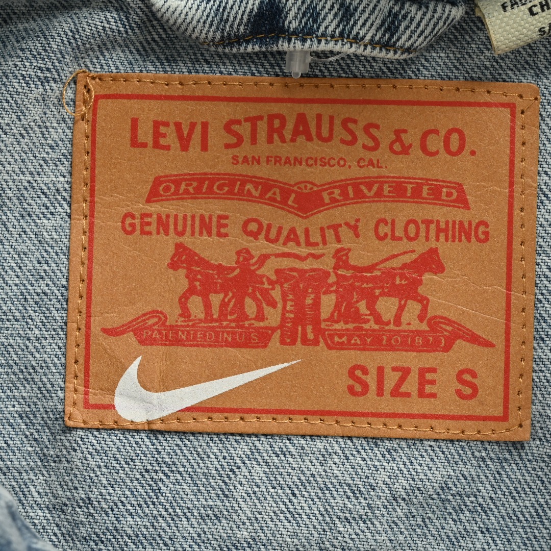 本地自取💰320 Levi’s x Nike 最新联名款 纽扣双口袋logo宽松休闲舒适翻领牛仔外套 各路大咖明星同款 男女同款 今年最新系列 顶级联名品控 代工厂原版出货 精益求精细节一丝不苟 开模刻字做旧五金纽扣 面料有质感过水洗处理 胸口经典双袋设计 版型非常经典 胸口有刺绣Nk logo 点缀levis定制红标小铭牌 后背超大徽标刺绣logo 联名定制主标吊牌 都是开模开发的 强烈推荐 搭配同款长裤 SIZE:S-XL