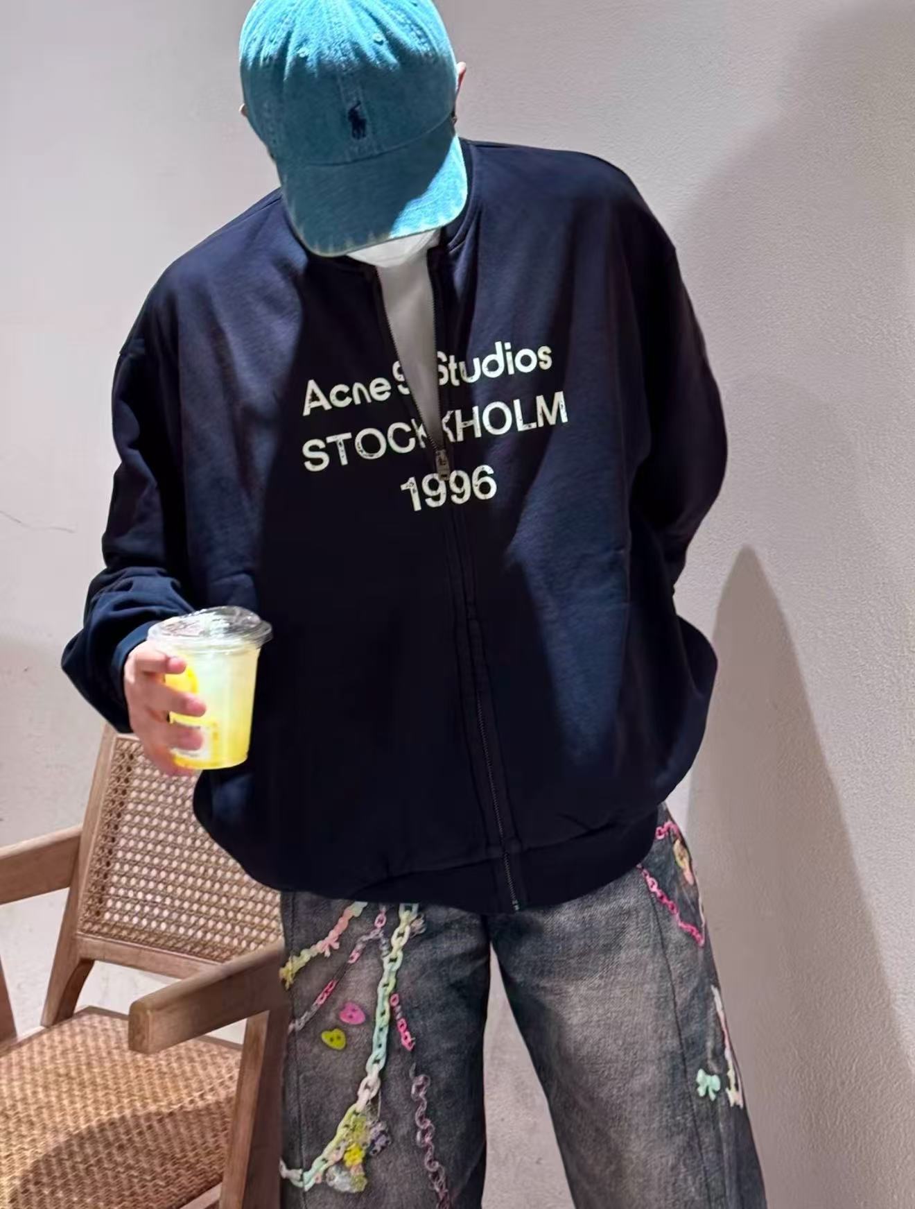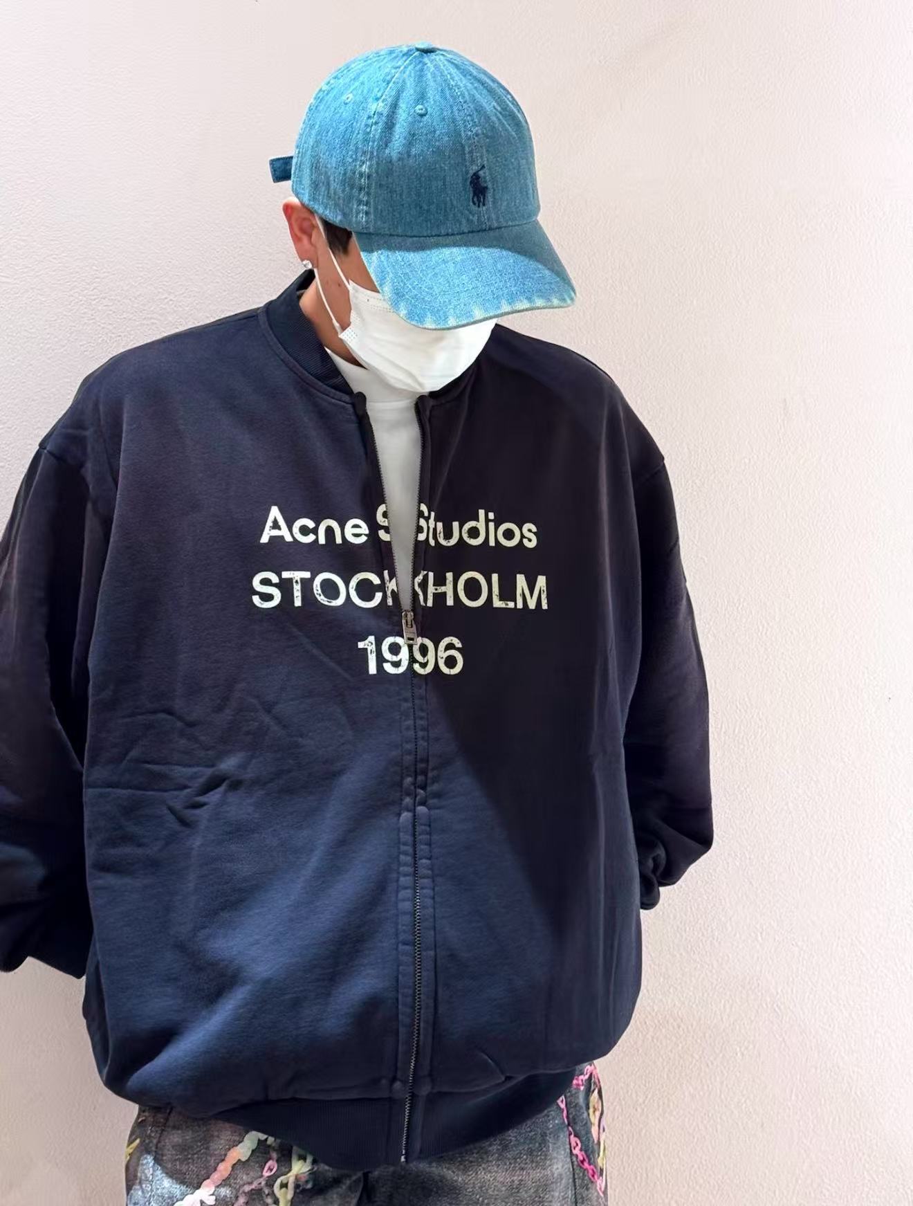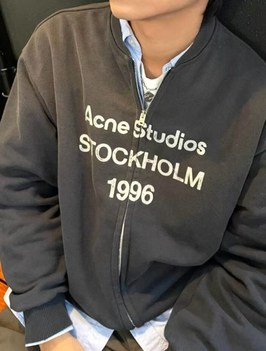 Acne Studios 25FW 1996喷墨拉链棒球服外套 上身效果#