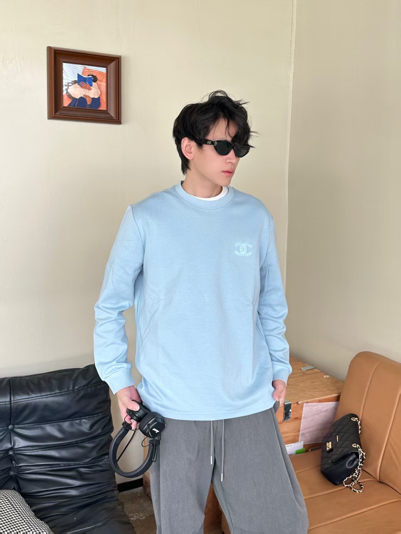 CHANEL/香奈儿 25Fw 暗纹编织logo双C立体刺绣长袖T恤 上身效果#