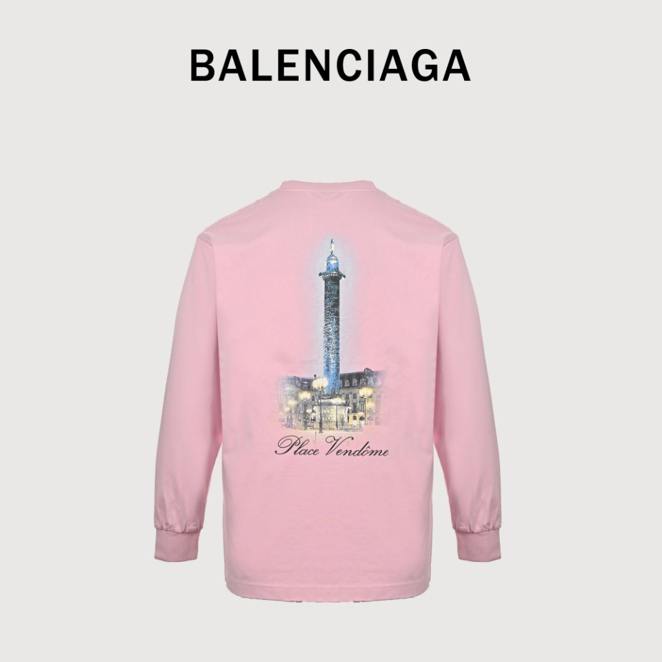 本地自取💰180 Balenciaga巴黎世家 x Vogue 联名 后背灯塔水洗破洞长袖T恤 购入原版对版操作今年新发售的可乐区别往年。领口,肩处,袖口,下摆均采用破洞工艺处理 300克精梳棉面料,洗水后达320克全棉螺纹 面料洗水, 正面采用丝网菲林印花,背面采用进口白墨康利机数码直喷,灯塔图无论色彩还是打雾效果都非常繁杂, OS宽松落肩版型,男女百搭款 颜色:浅褐色,深灰色,军绿色,粉色 size: S-XL