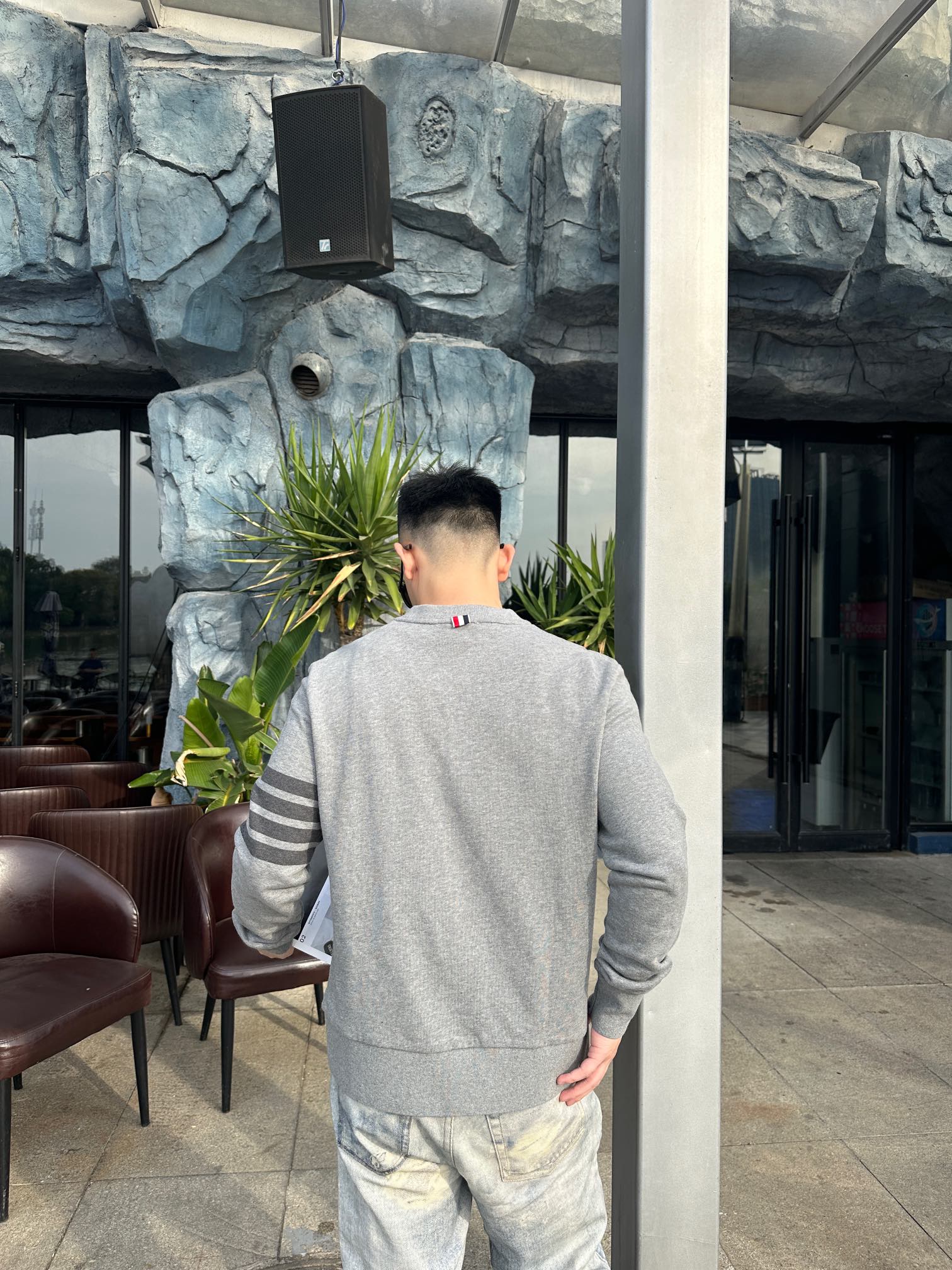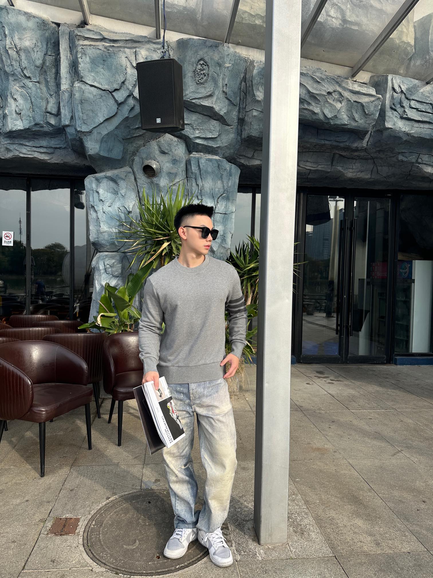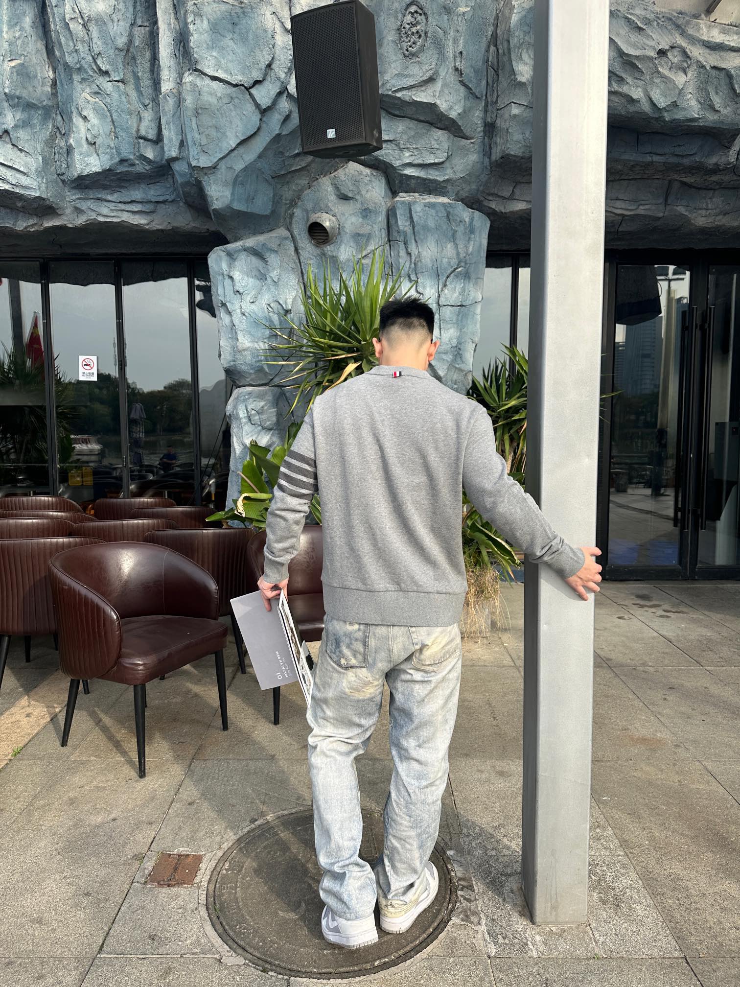 THOM BROWNE TB 汤姆布朗 四杠色织圆领卫衣 上身效果#