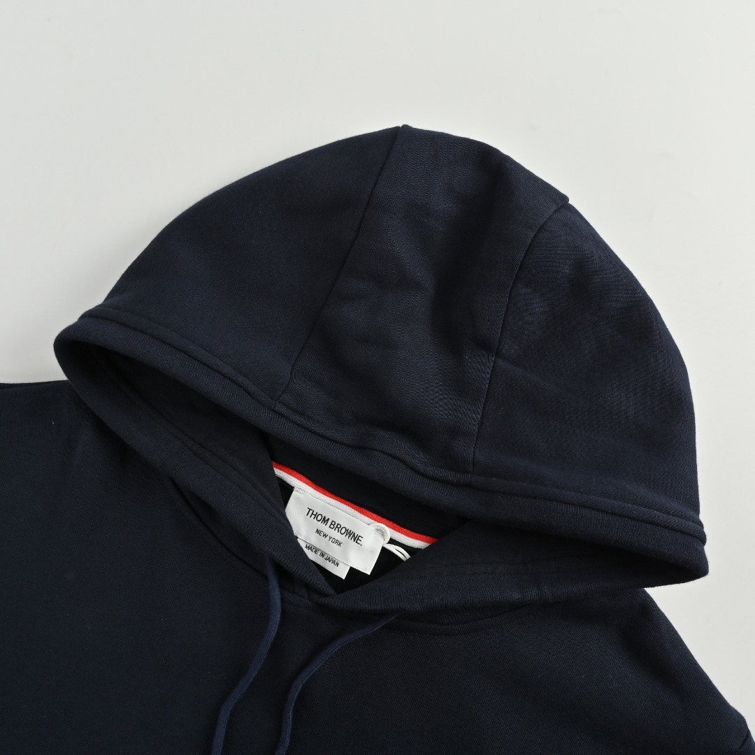 本地自取💰250 Thom Browne/汤姆布朗 四杠色织连帽卫衣 面料采用专业订纺表面32s触感细腻内里8s,挺括有型,克重高达380g,起订量500kg(相当于1000件单品)。新版本肩膀为双缝线,领口包边领口螺纹加宽0.4公分,下摆为定制羊皮标,区别失眠版本,侧身螺纹为双层更有质感!做工完全还原专柜最新版,代购级别! Size:1-4