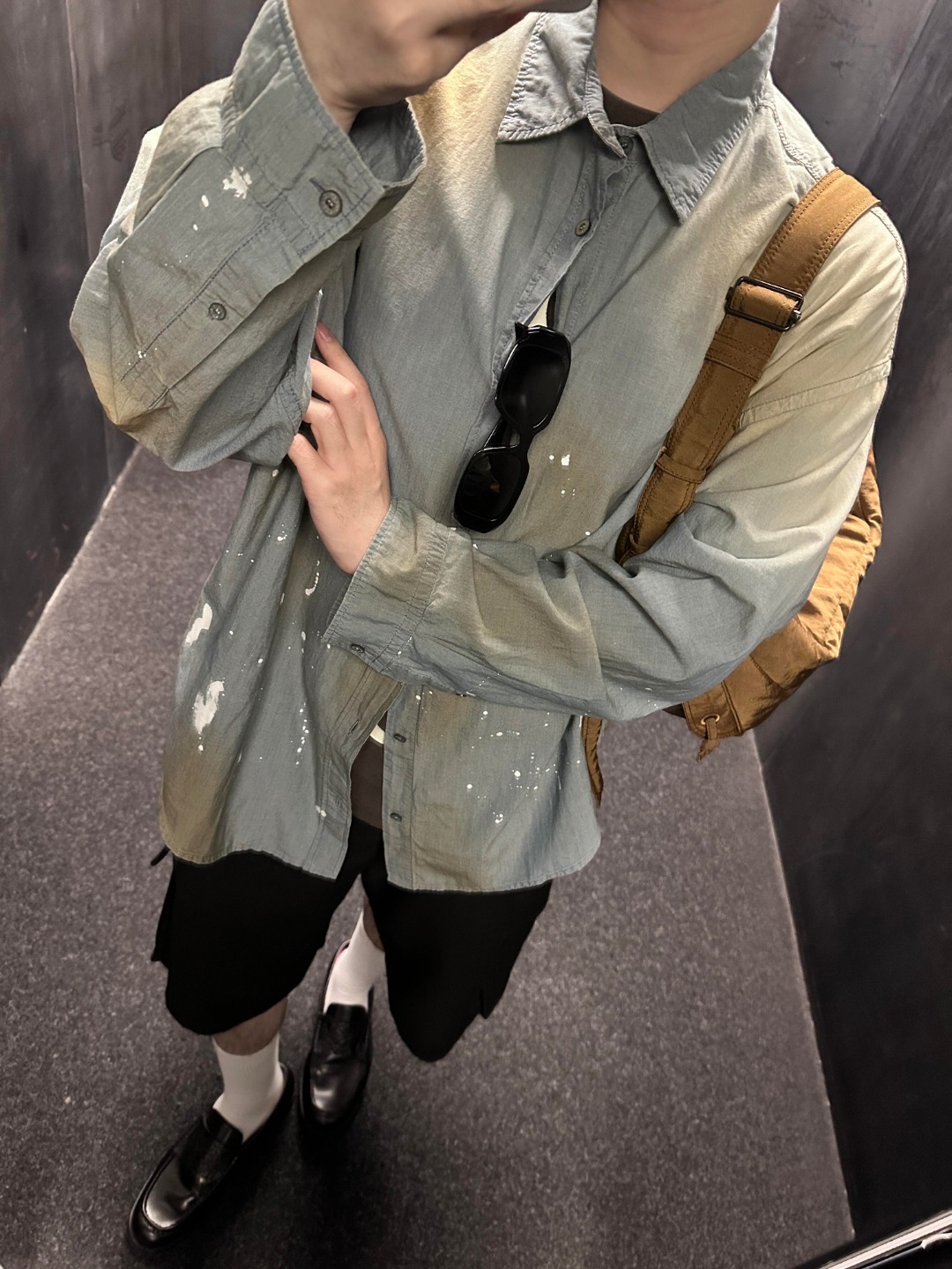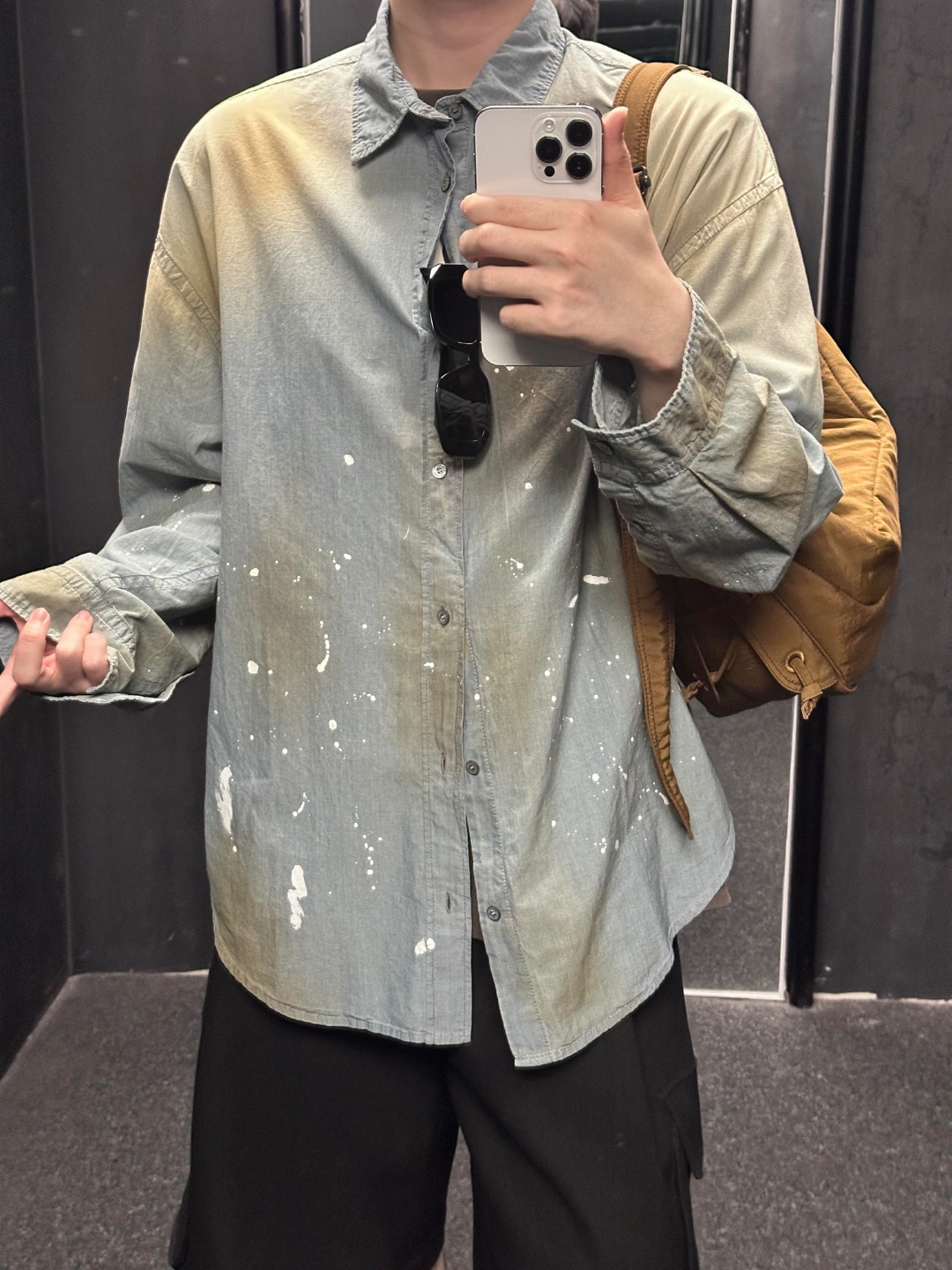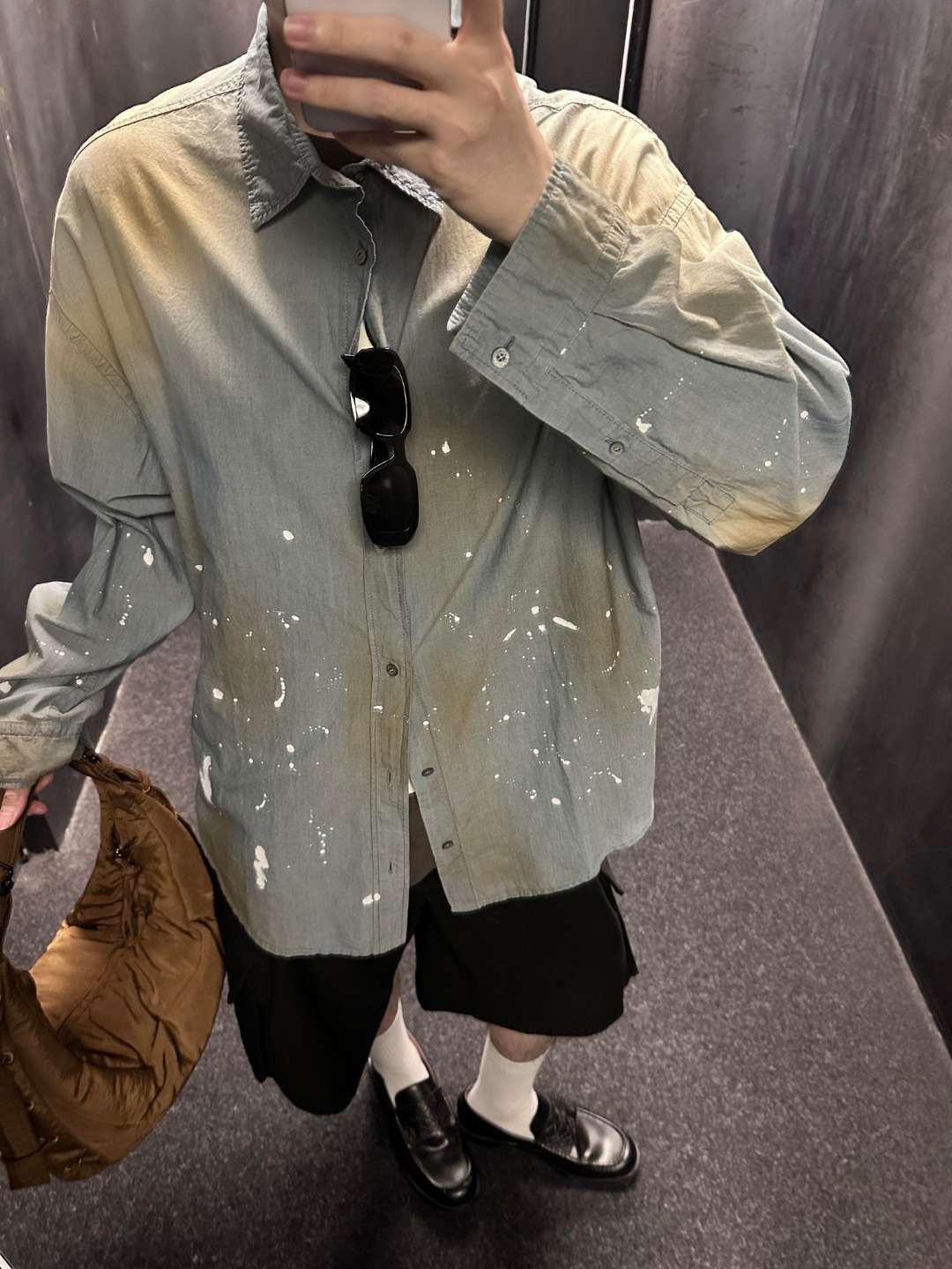 Acne Studios 25Fw 泼墨做旧牛仔长袖衬衫 上身效果#