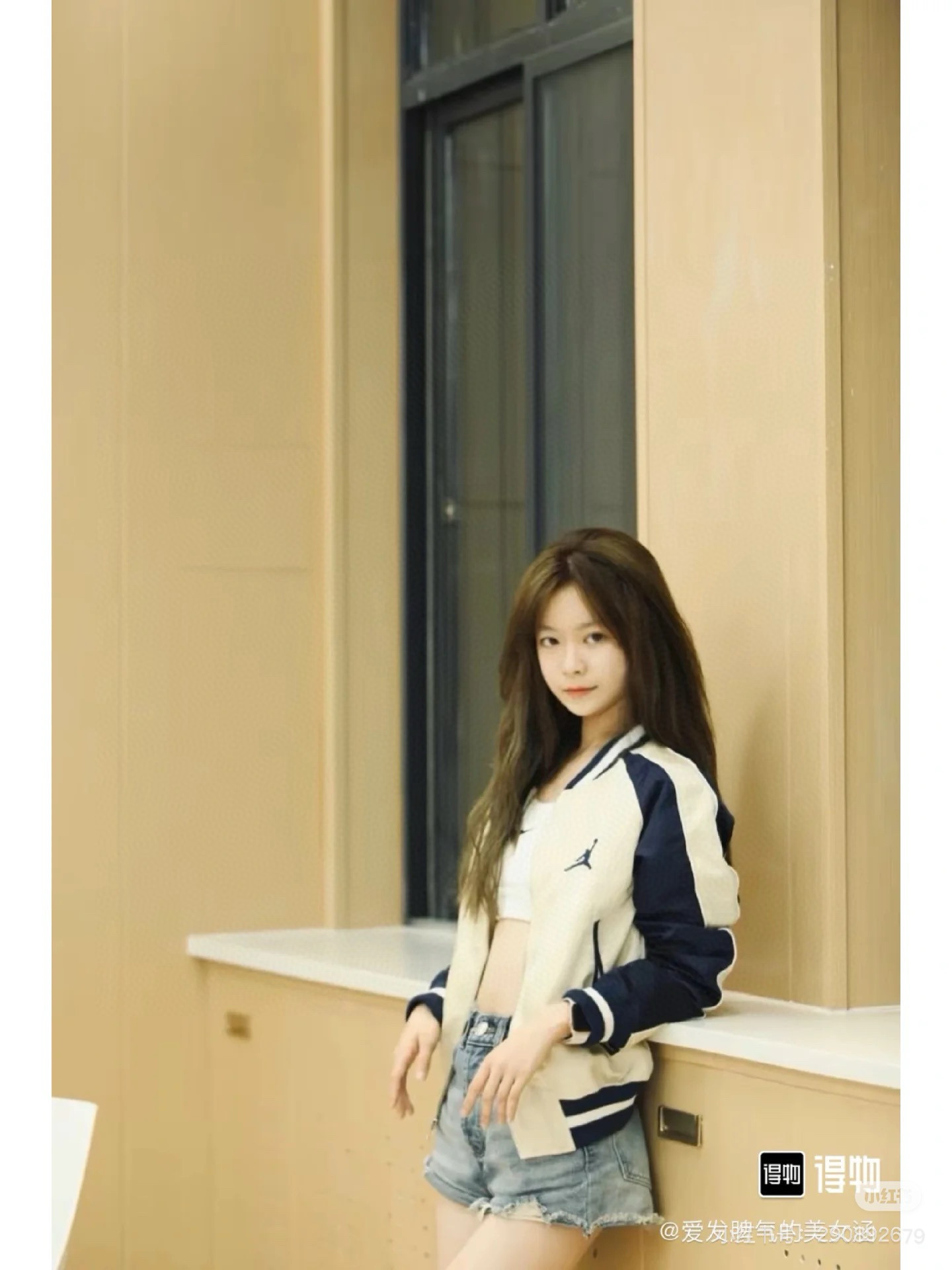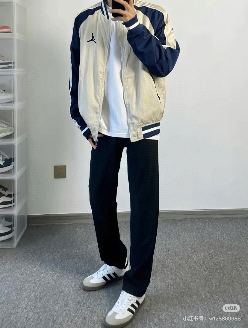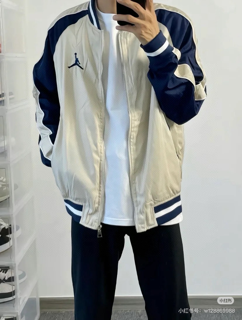 Air Jordan 刺绣徽标撞色拼接夹克外套上身效果#
