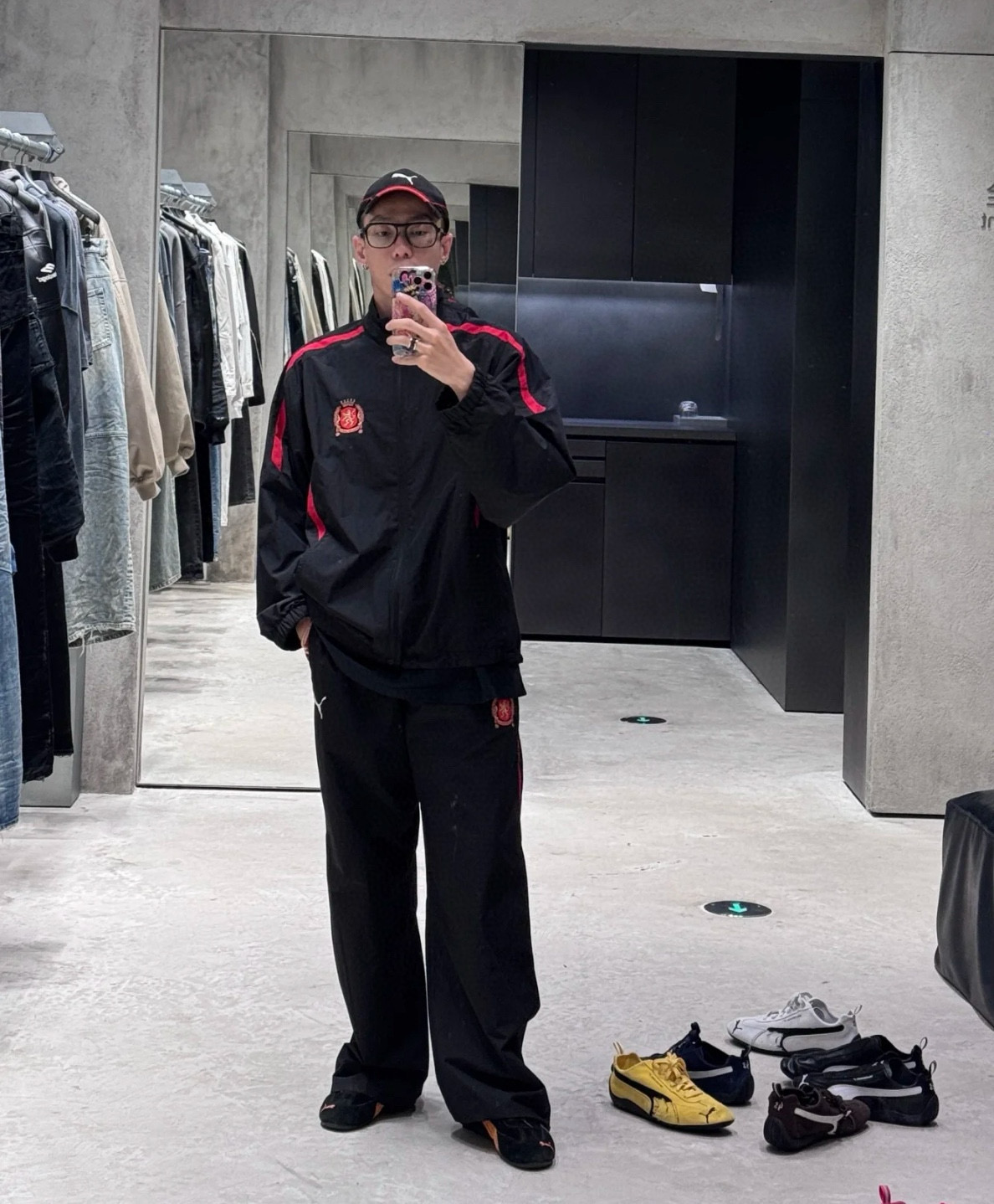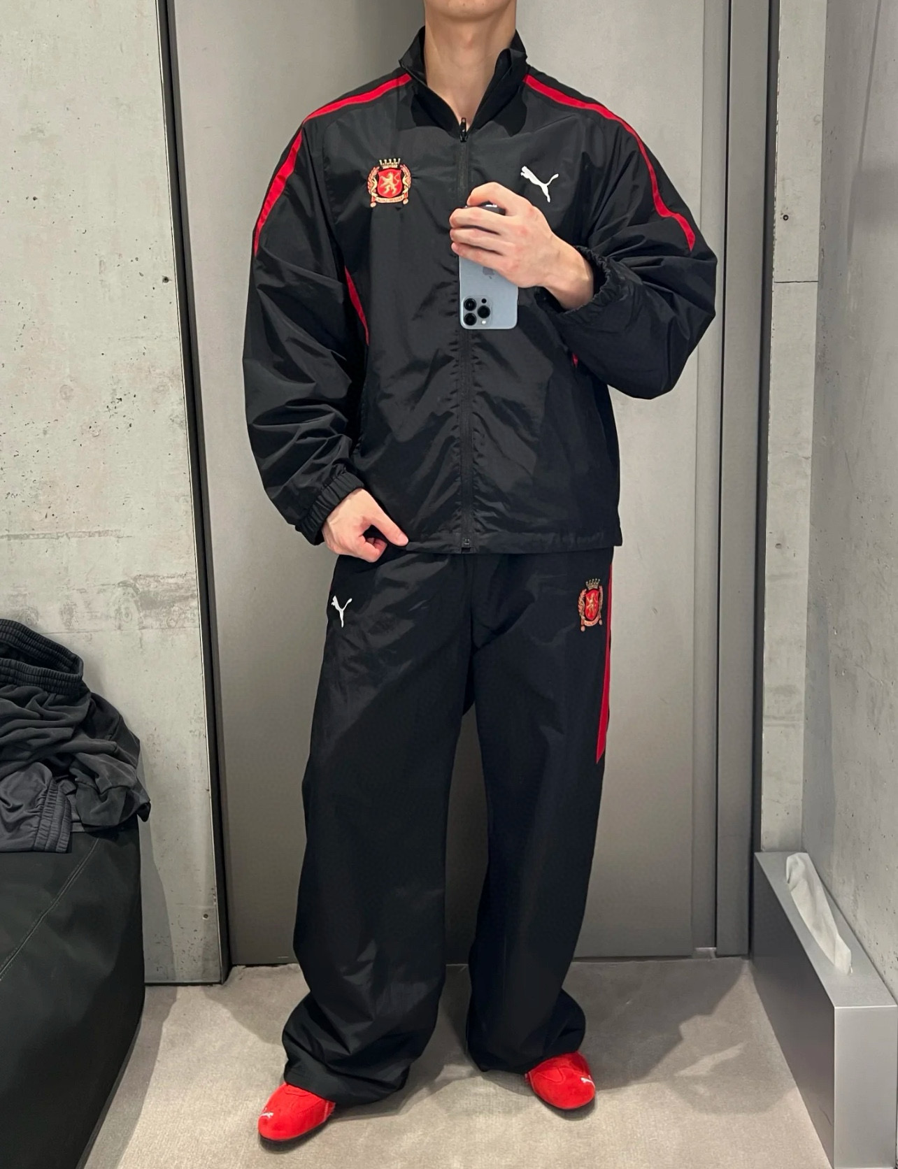 Balenciaga x Puma 巴黎世家 BLCG 25FW 彪马联名曼联拼接长裤 上身效果#