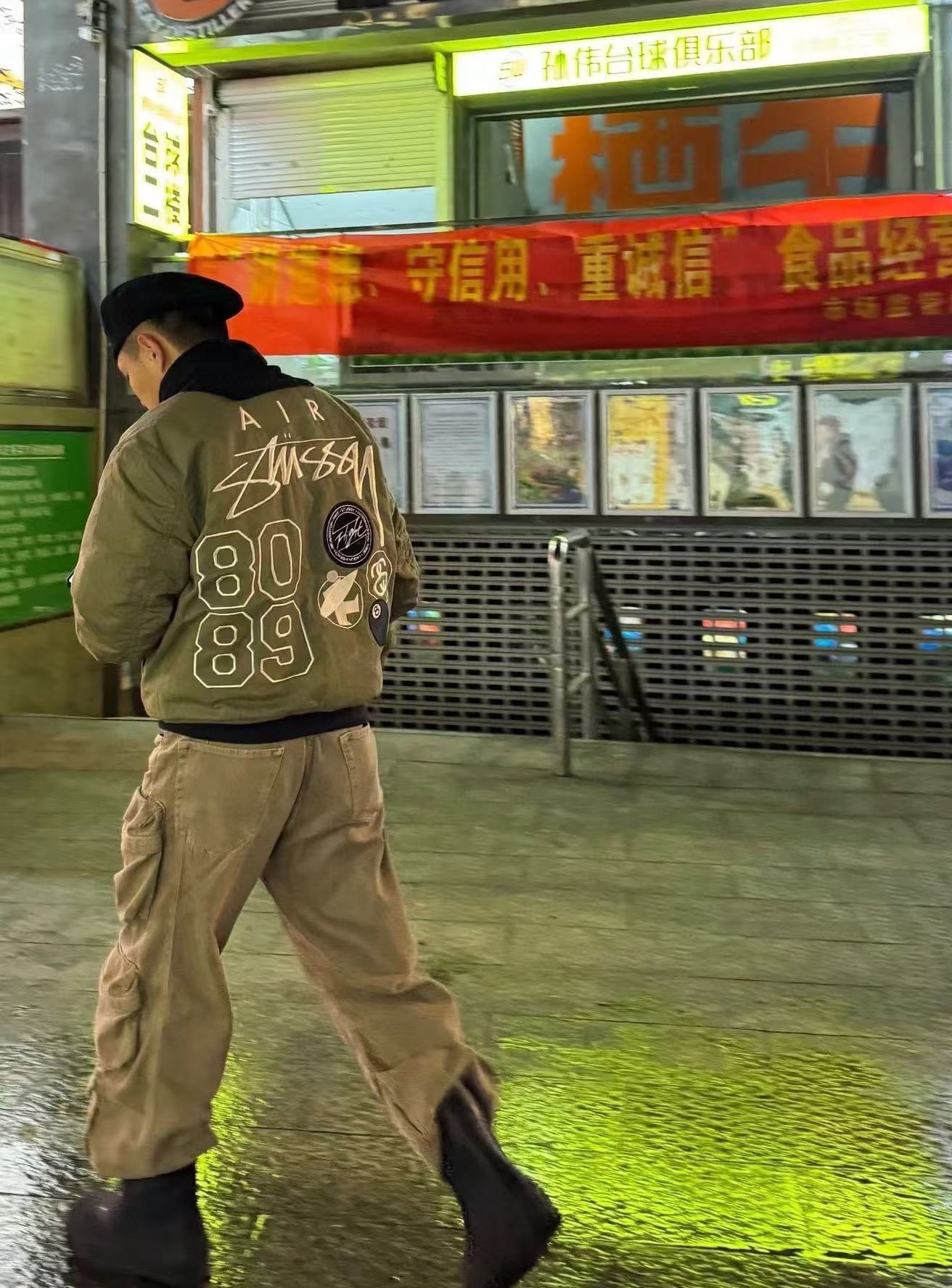 Nike x Stussy 斯图西联名款 FW23 Logo刺绣双面穿夹克外套 上身效果#