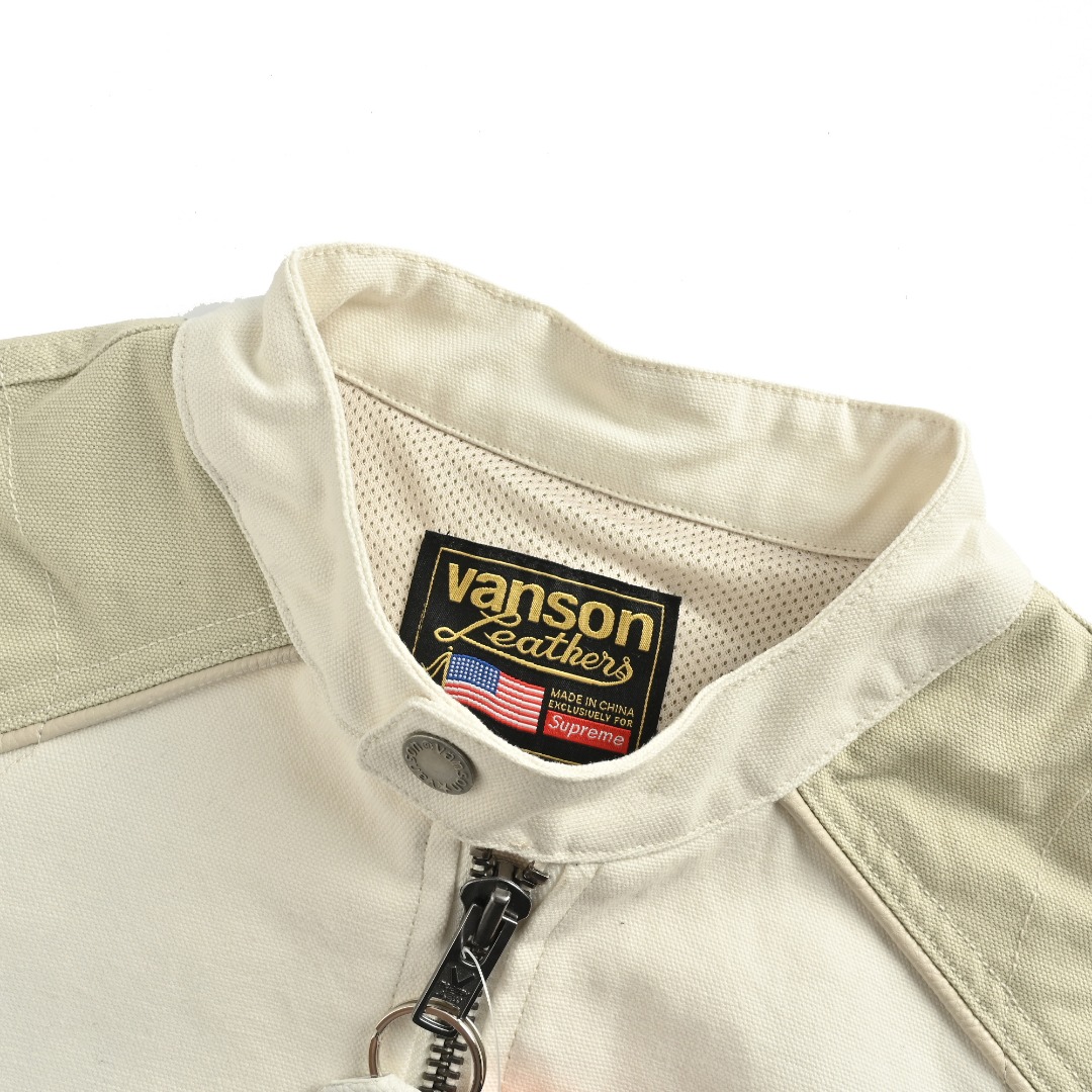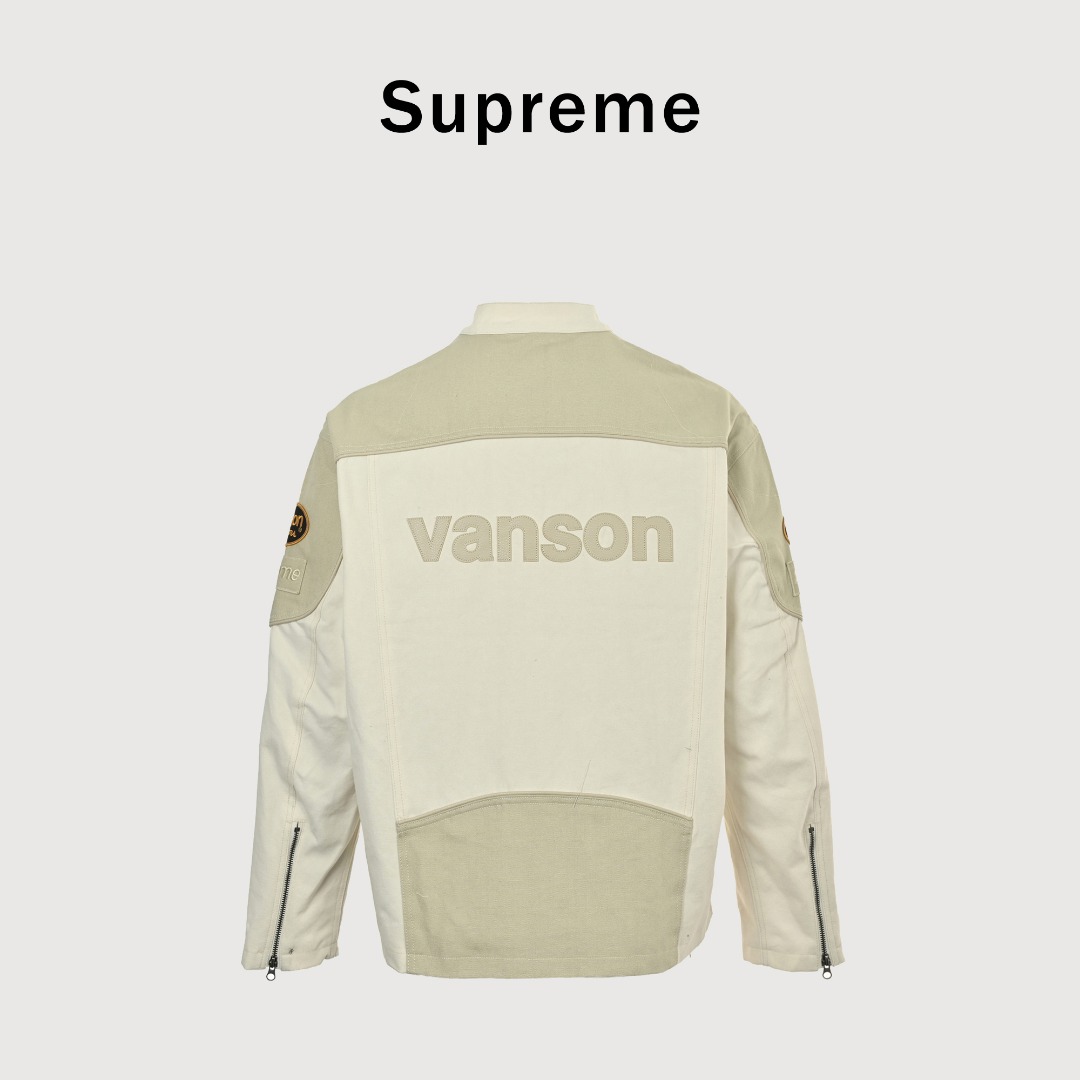 Supreme x Vanson Leathers x Cordura 联名款 SS25 WEEK13 Cotton Jacket 皮革徽标贴花拉链拼接美式潮流夹克外套