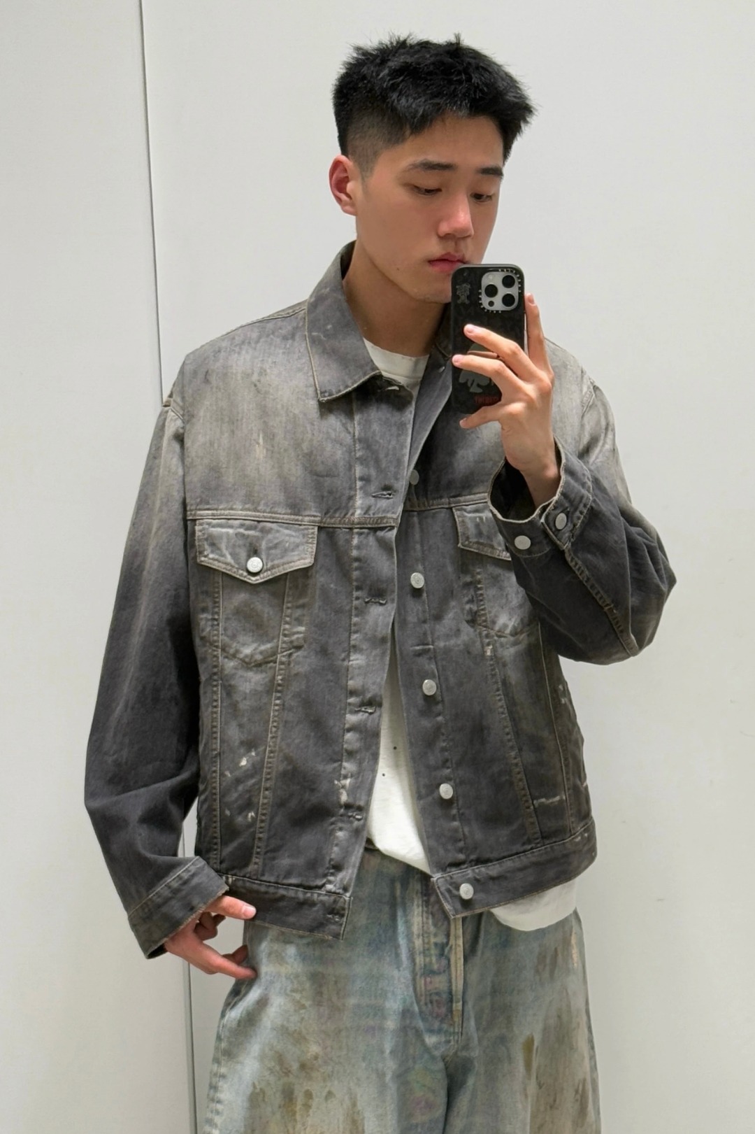 Acne Studios 25Fw 水洗泼墨牛仔外套 上身效果#